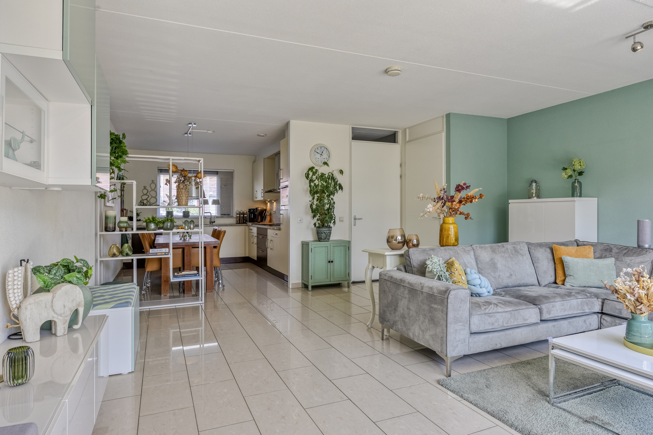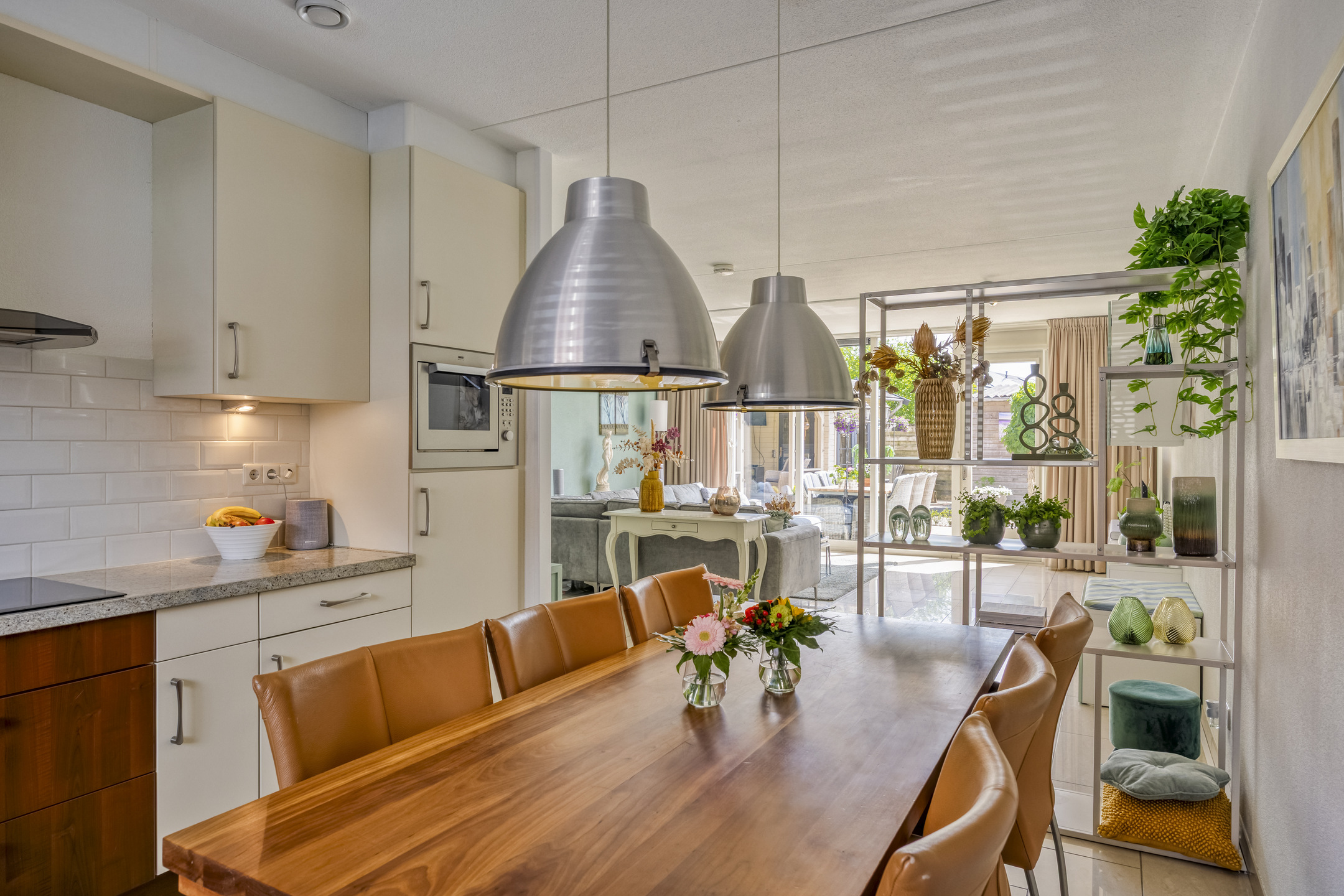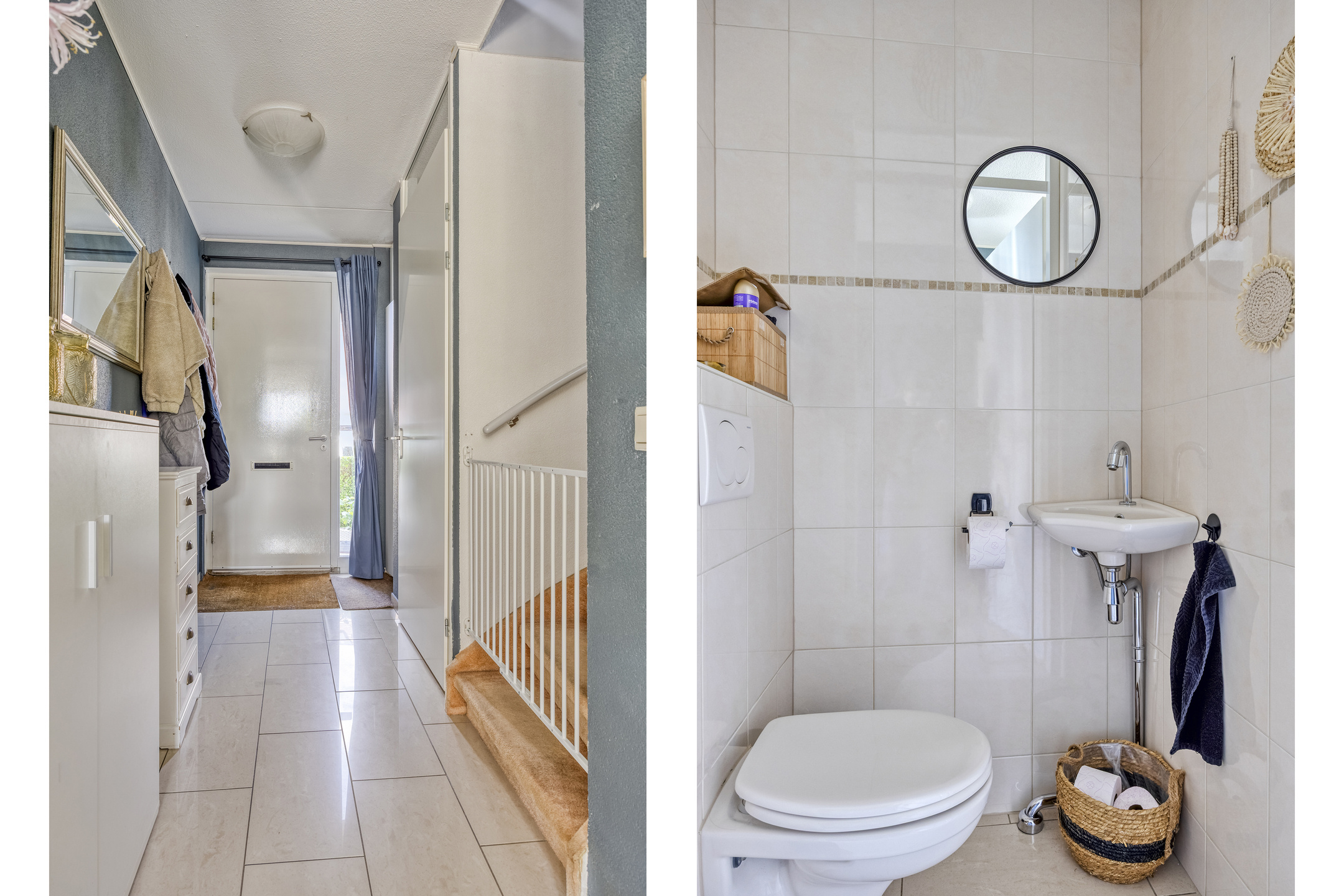 Begane grond voorzien van vloerverwarming: entree, hal met meterkast, trapopgang naar de 1e verdieping en toilet voorzien van wandcloset en fonteintje. Riante tuingerichte woonkamer met fijne lichtinval door de vele ramen, voorzien van plavuizenvloer en provisiekast onder de trap. Woonkeuken aan de voorzijde voorzien van inductiekookplaat, afzuigkap, combi-oven, koelkast en vaatwasser.