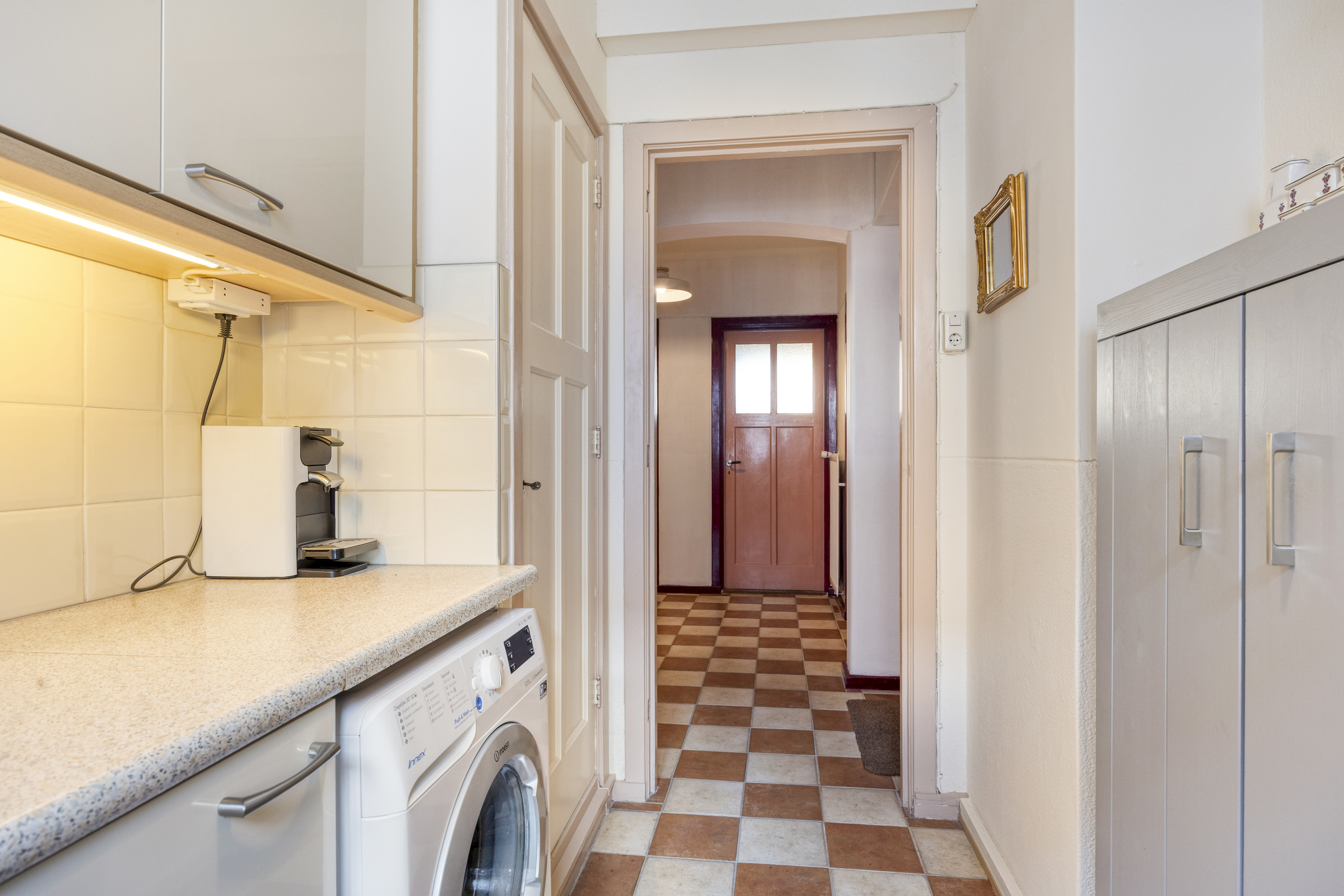Begane grond: entree met brievenbus trapopgang naar de woonverdieping.