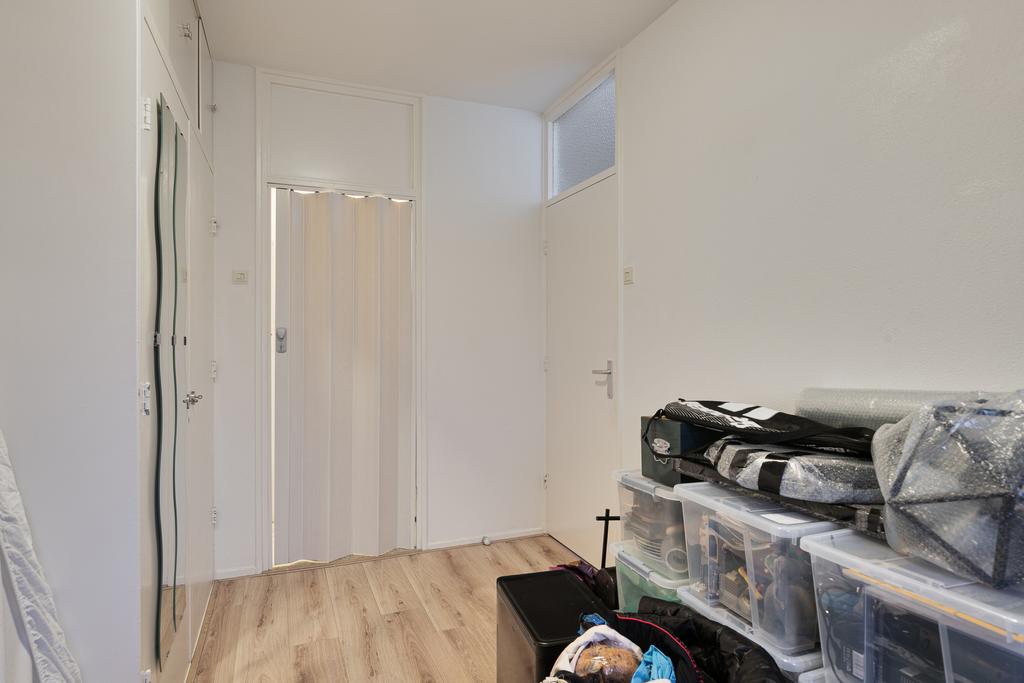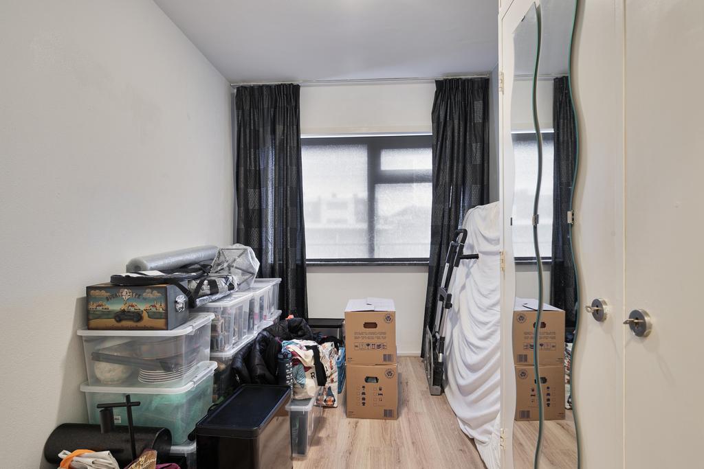 De slaapkamer van ca 18 m² is gelegen aan de galerijzijde. De kamer heeft een vaste kast en biedt toegang tot de badkamer met douche, wastafel(meubel) en designradiator.