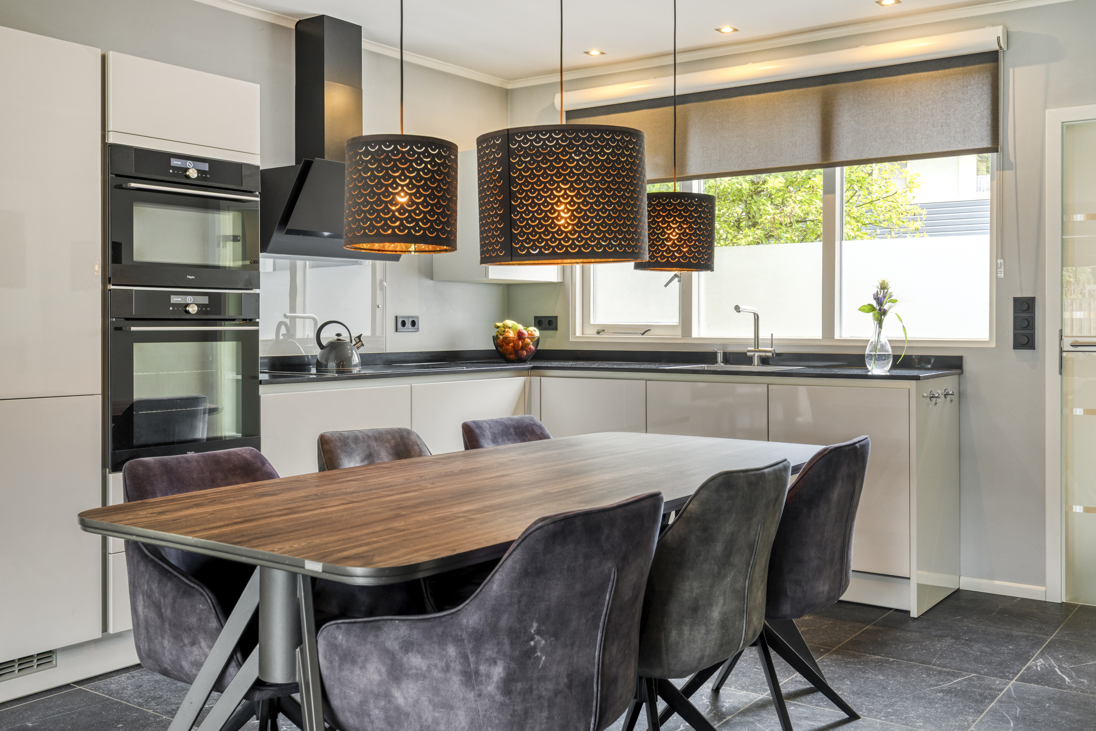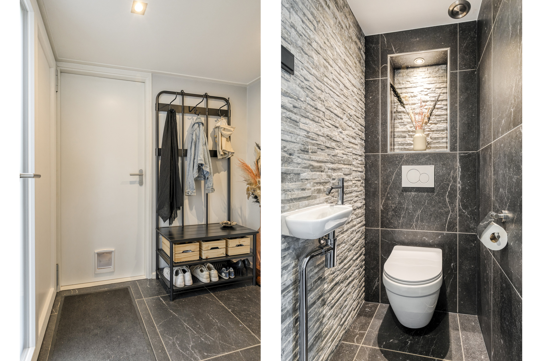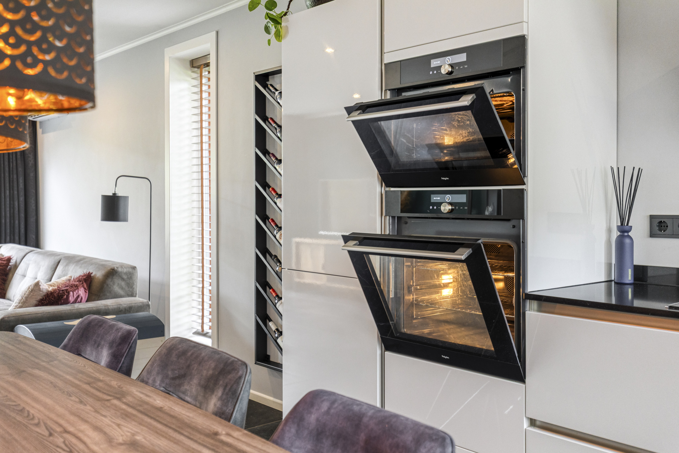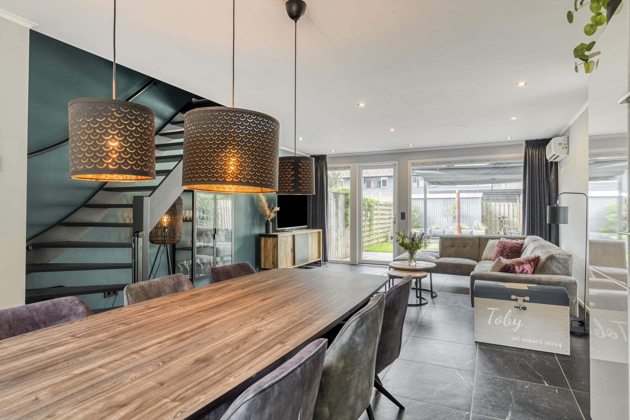 Begane grond: entree, hal met toegang tot de inpandige berging/bijkeuken en toilet voorzien van wandcloset en fonteintje. Ruime tuingerichte woonkamer voorzien van luchtwarmtepomp, gloednieuwe (kunststof) achterpui en trapopgang naar de 1e verdieping. Hoogglans keuken aan de voorzijde met ruimte voor een grote eettafel, voorzien van inductiekookplaat, afzuigkap, oven, combi-oven, koel-vriescombinatie en vaatwasser.