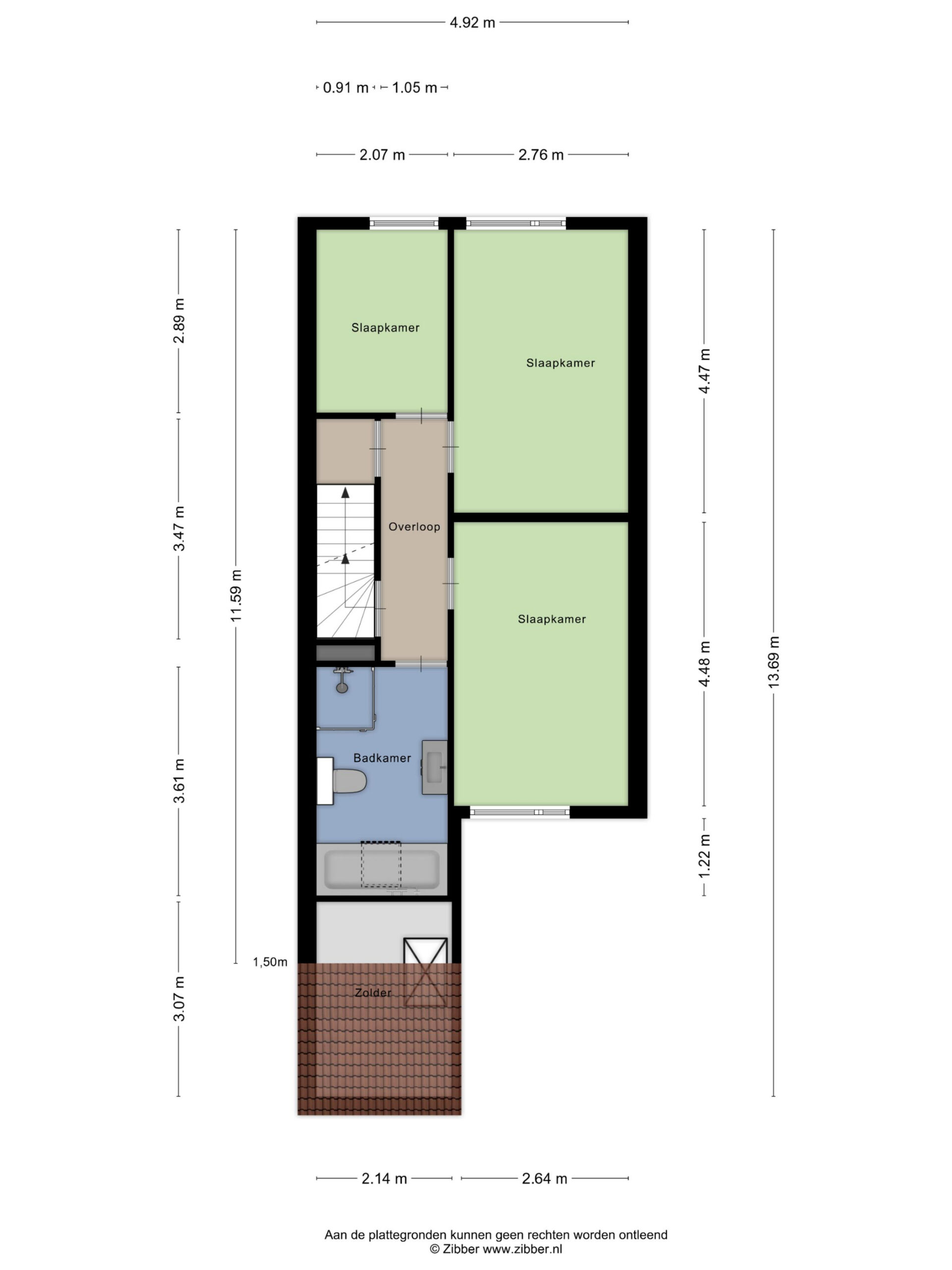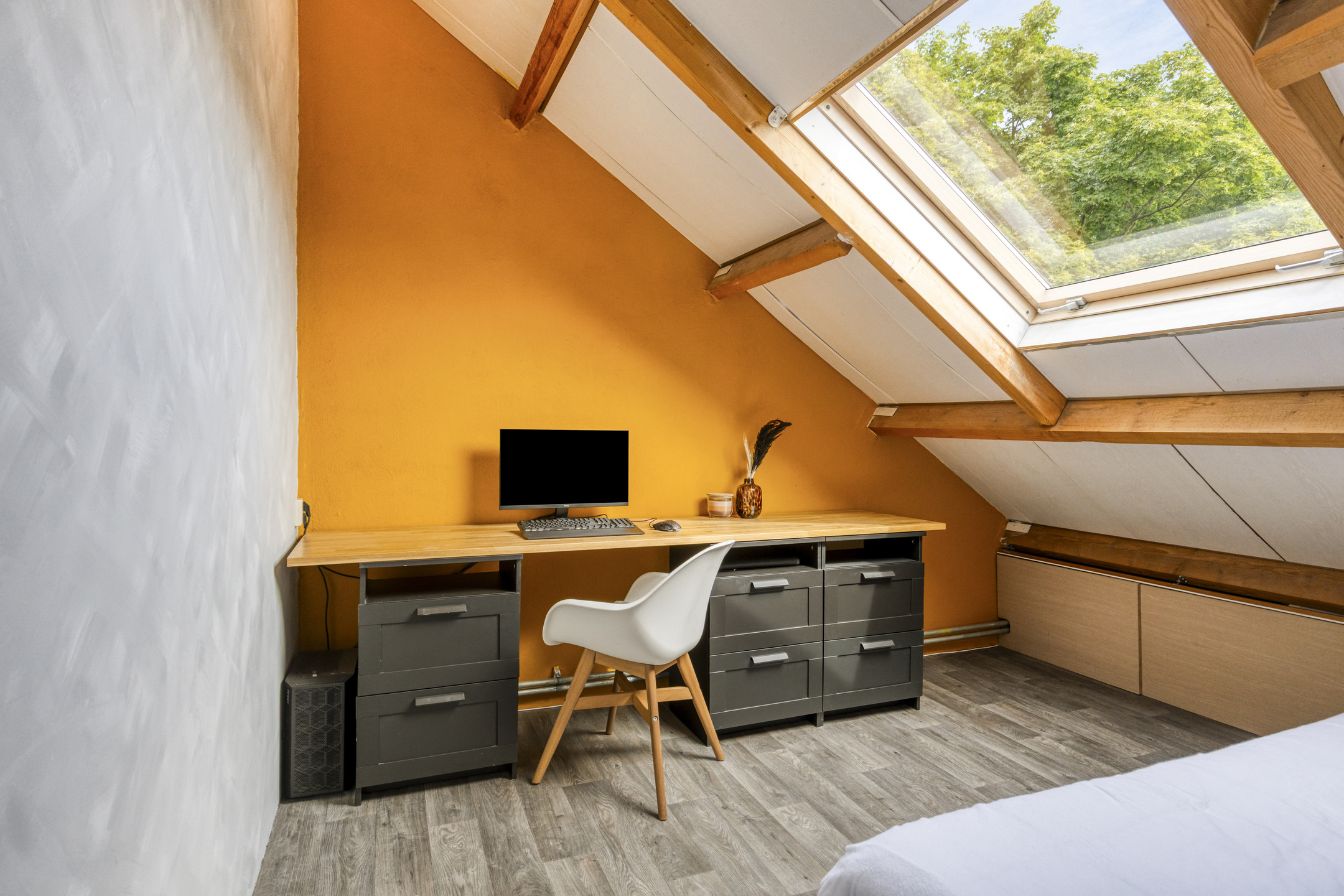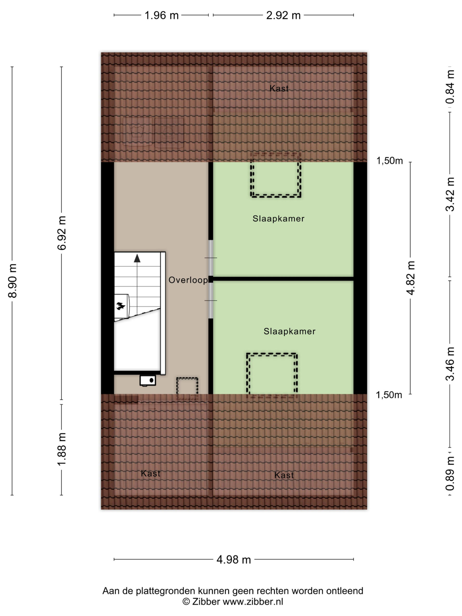 2e Verdieping: overloop met dakraam, cv-opstelplaats en aansluiting voor de wasapparatuur. Twee (slaap)kamers ter grootte van circa 7 m², voorzien van dakramen.