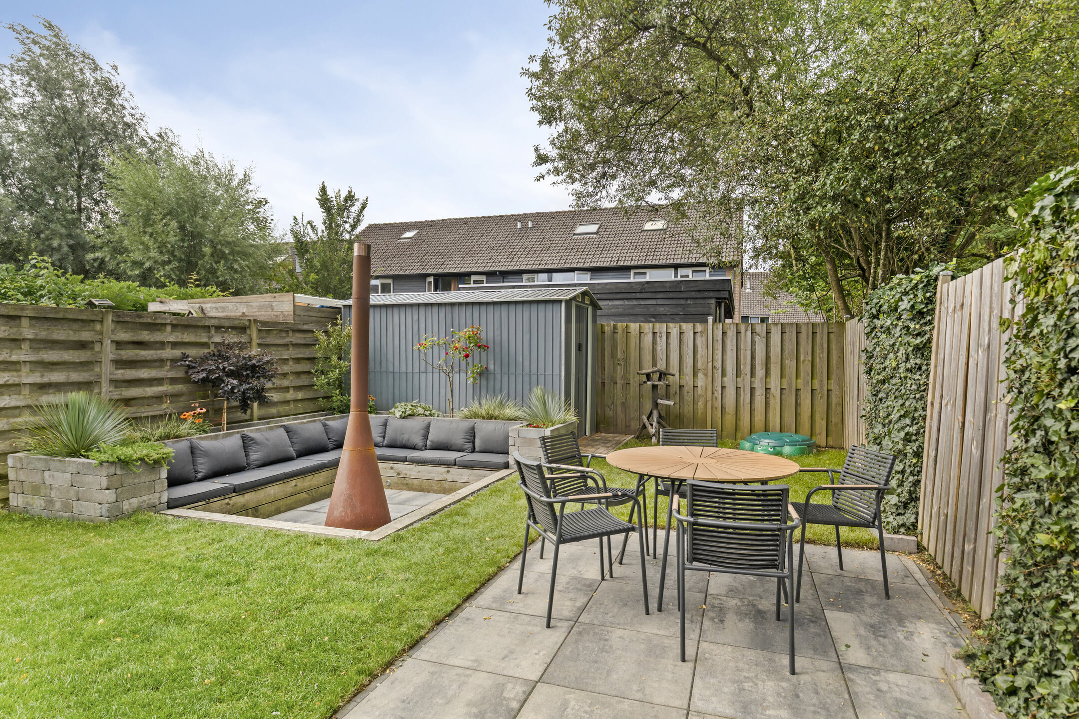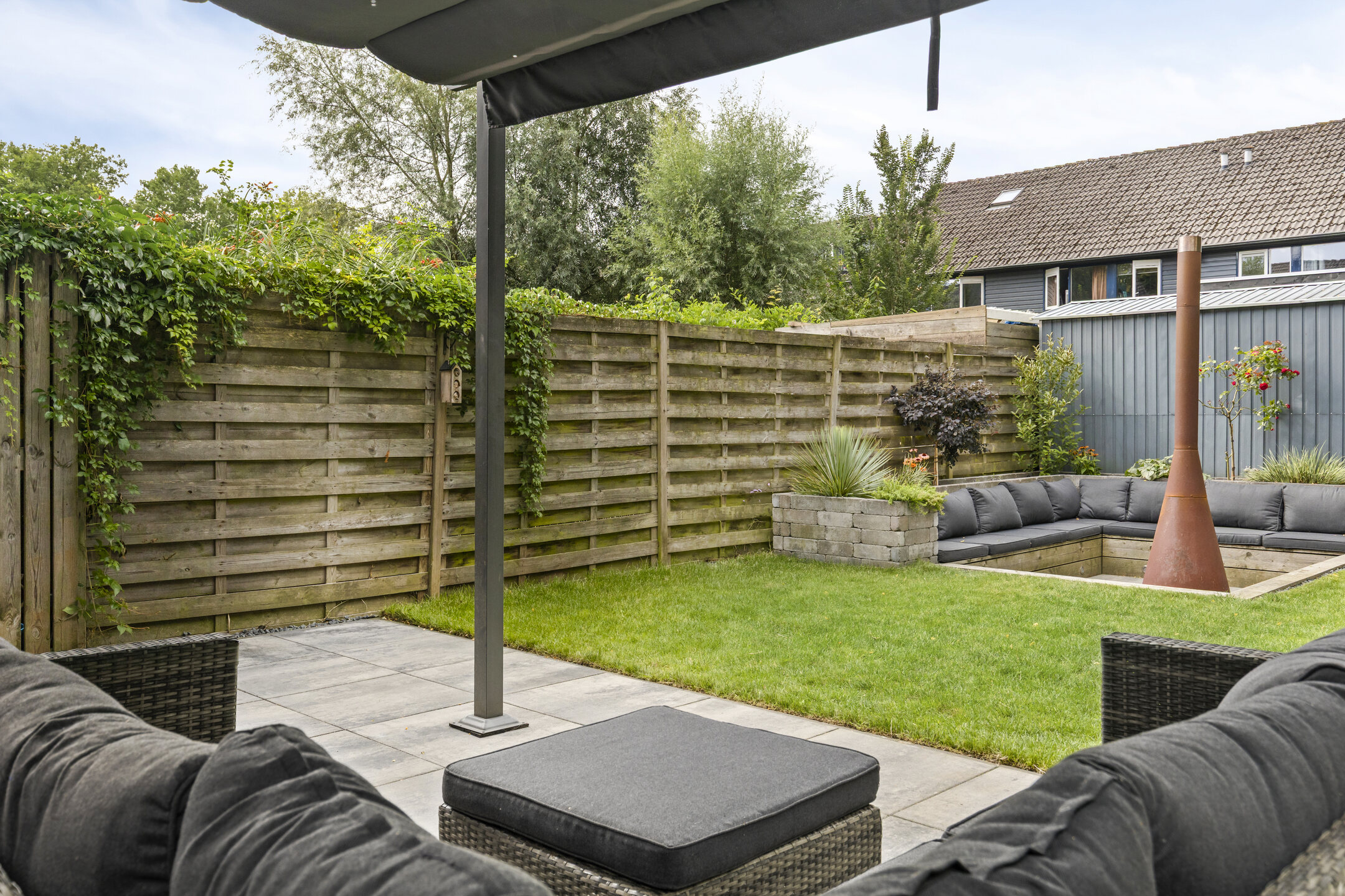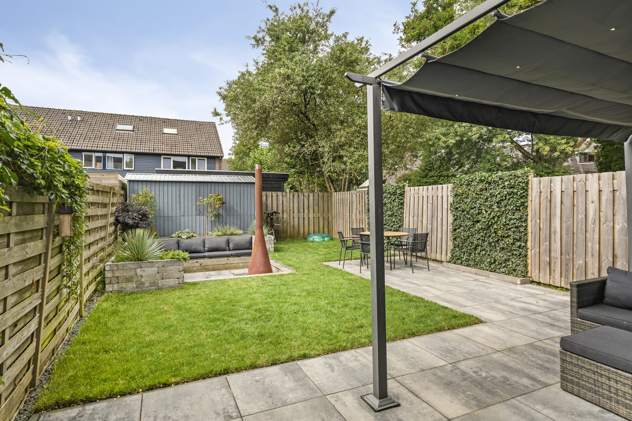 Fraai aangelegde achtertuin op het zuidwesten met terras aan de achtergevel, gazon, leuke zitkuil en vrijstaand berging achterin. Deze tuin is achterom te bereiken. Parkeren is mogelijk op de openbare parkeervoorzieningen in de buurt.