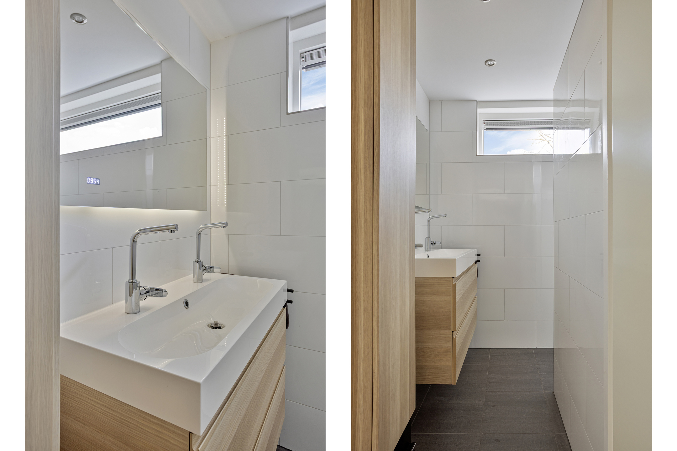 1e Verdieping: overloop. Drie keurige slaapkamers ter grootte van circa 7,5 m², 12,5 m² en 15 m² en een moderne badkamer voorzien van ruime inloopdouche en dubbel-wastafelmeubel. Separaat (2e)toilet voorzien van wandcloset.