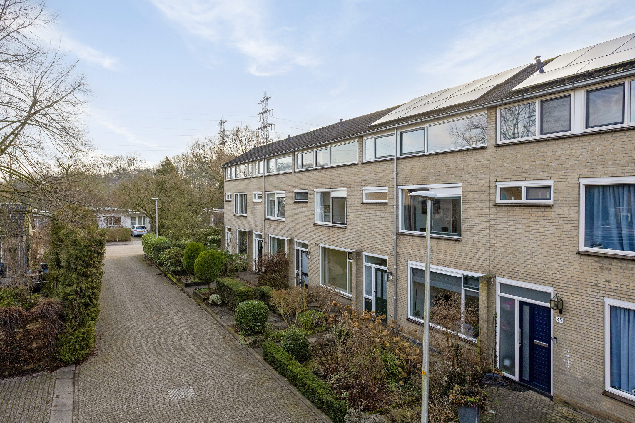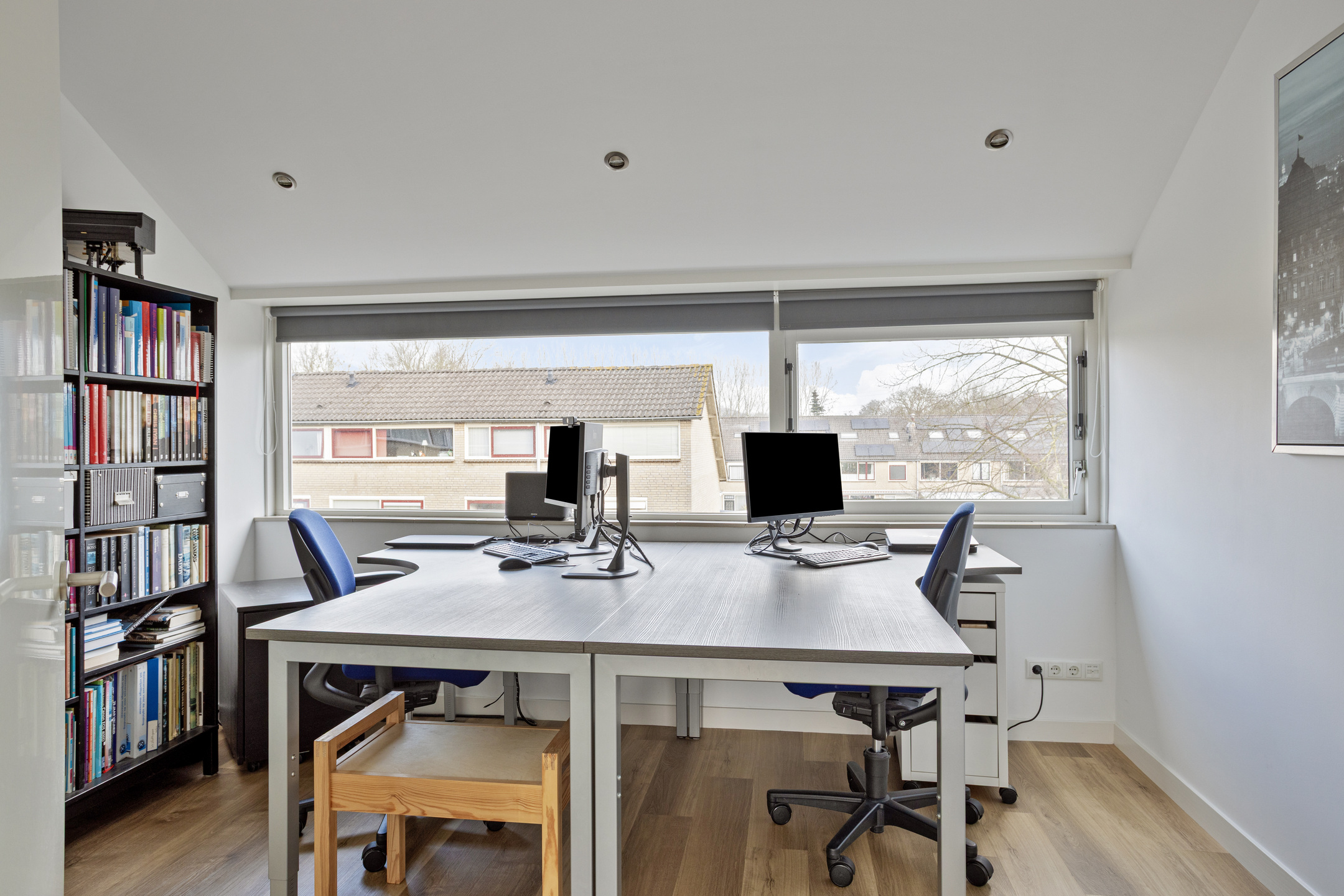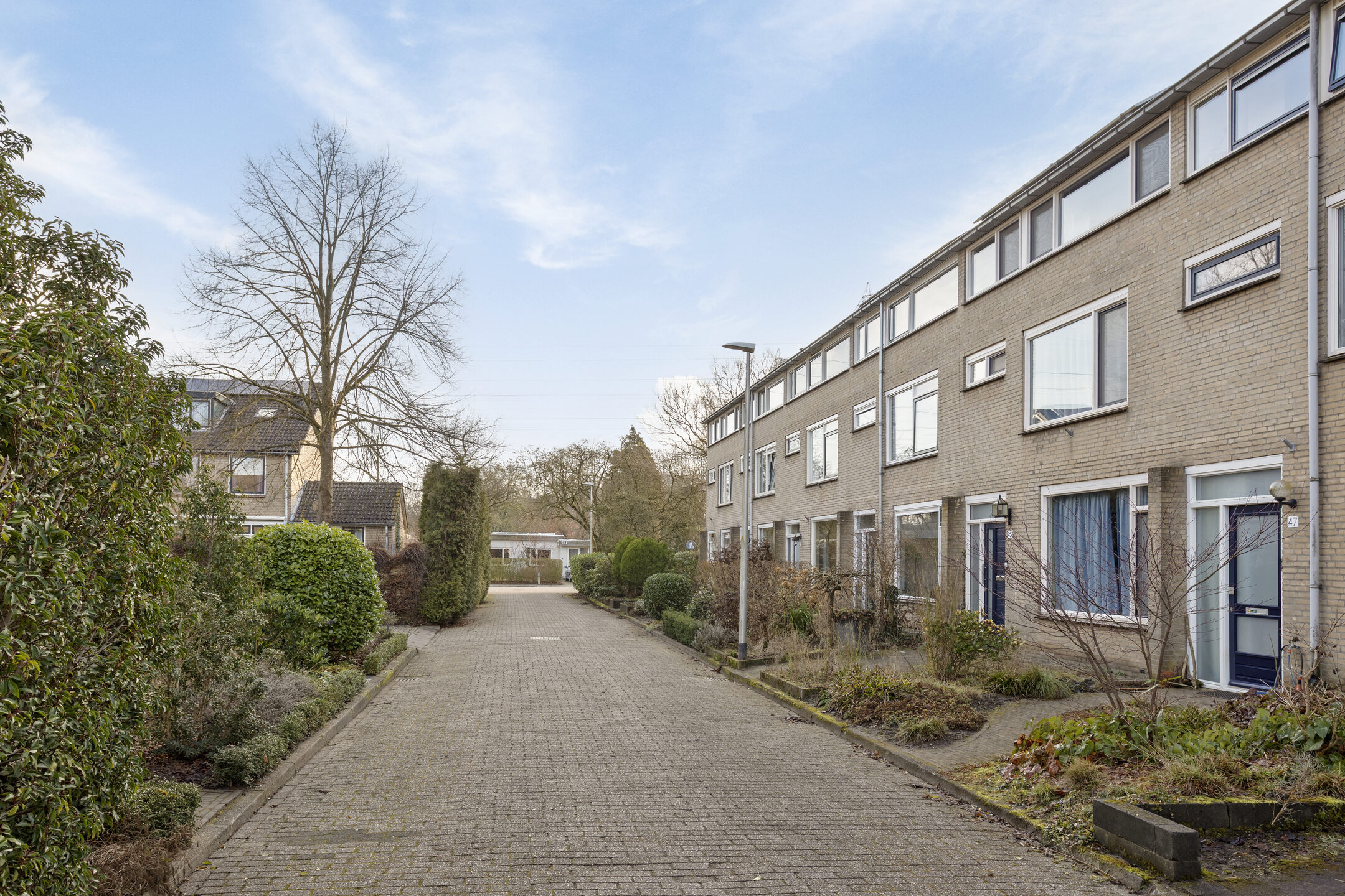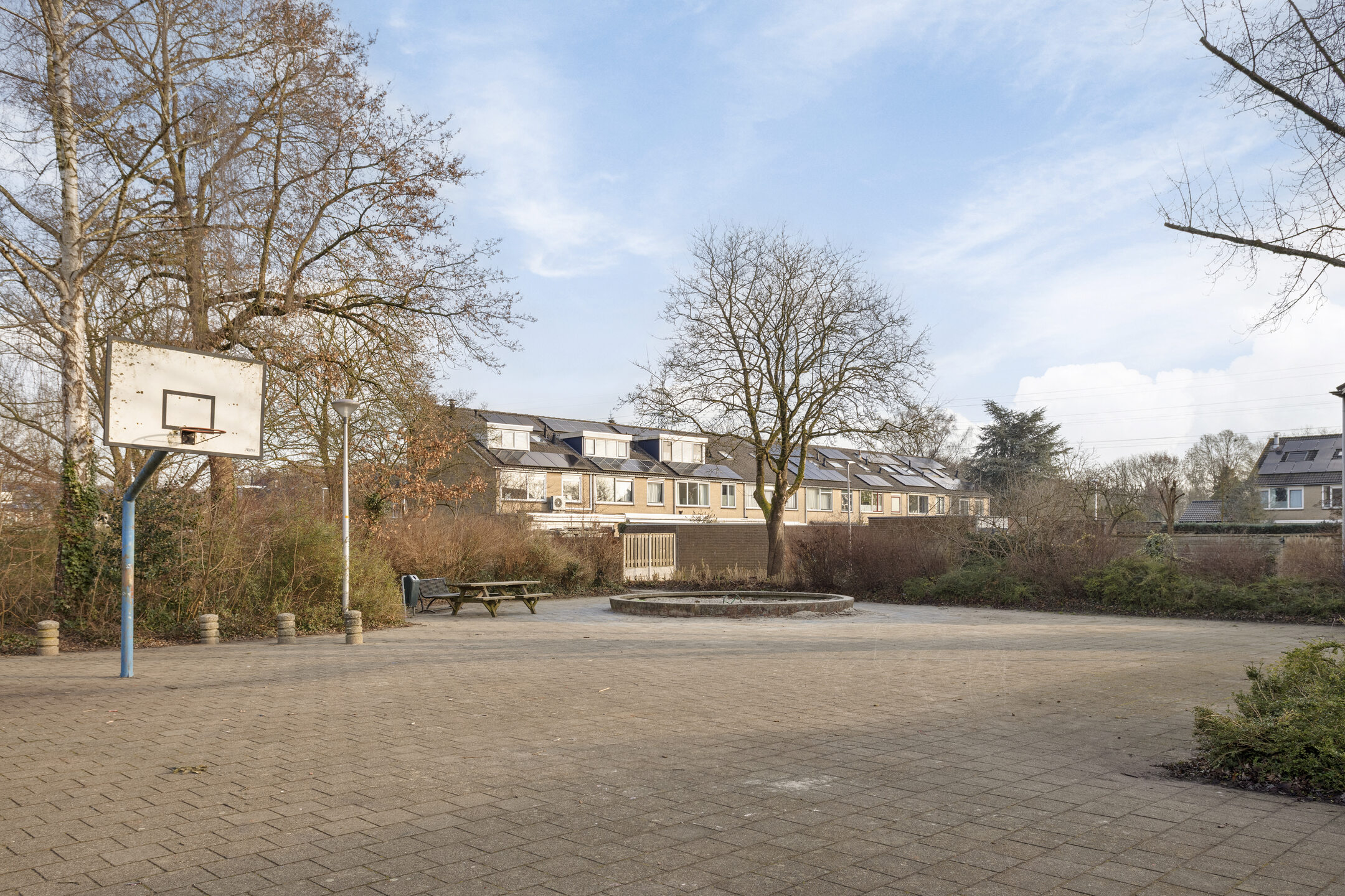 Zonnige achtertuin op het zuiden met bestraat terras tegen de achtergevel voorzien van elektrisch zonnescherm, gazon, looppad naar achter en een vrijstaande garage ter grootte van circa 19 m². De tuin is ook achterom te bereiken. Parkeren is mogelijk op de openbare parkeervoorzieningen in de straat.