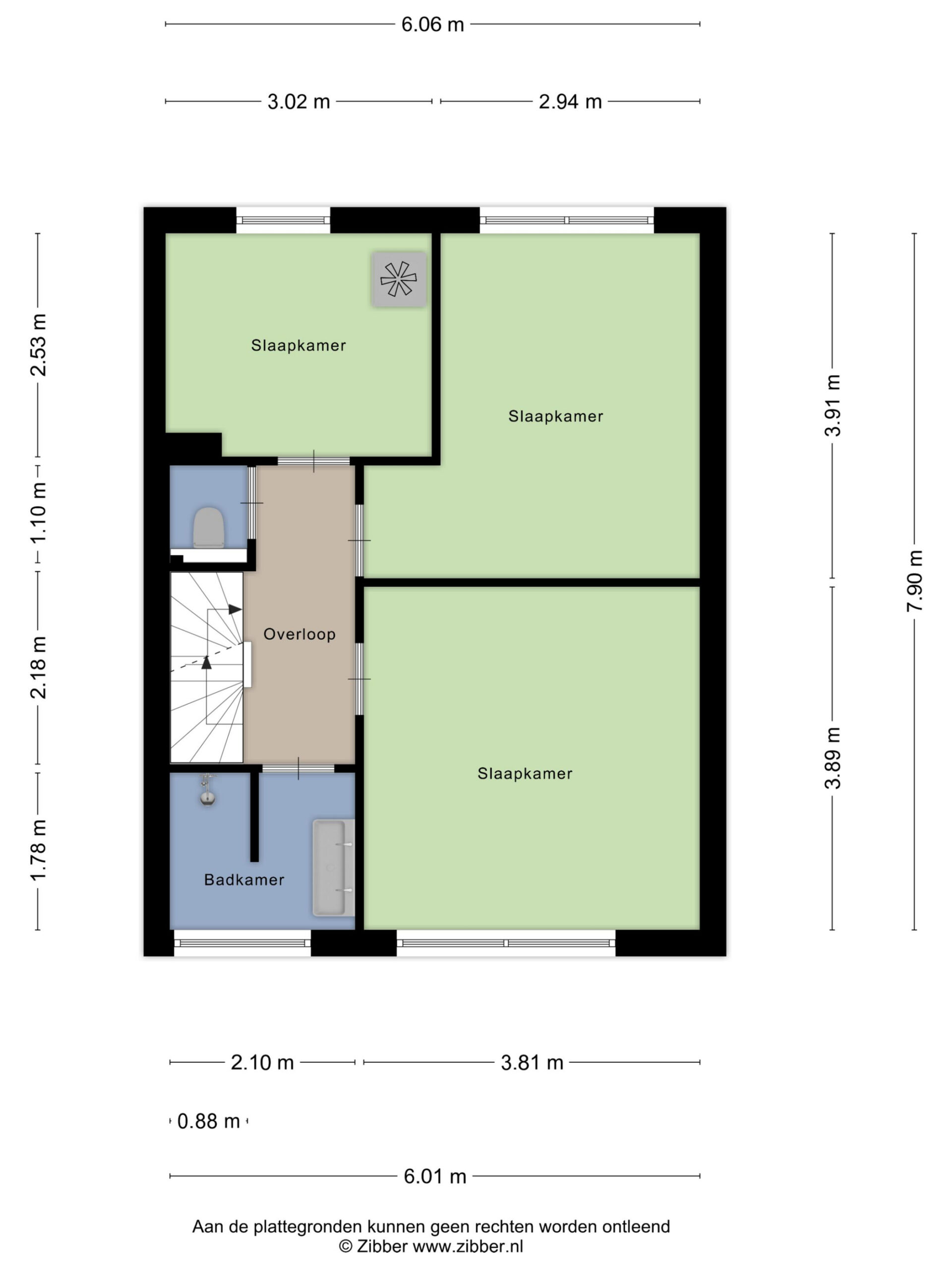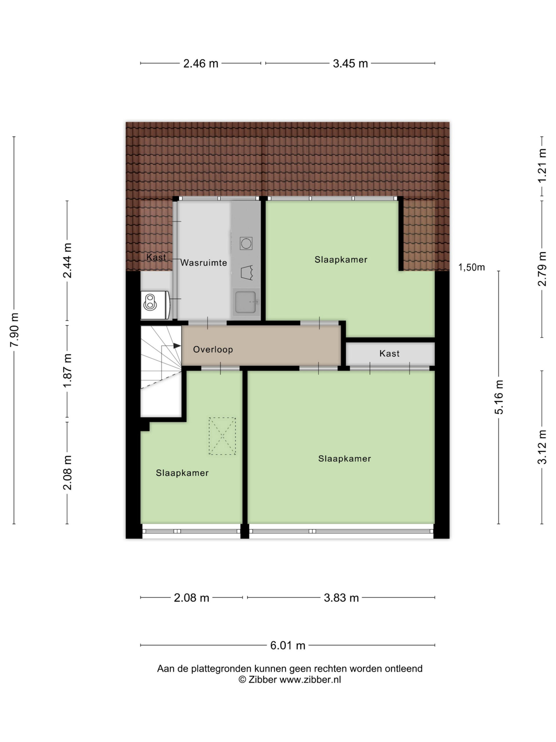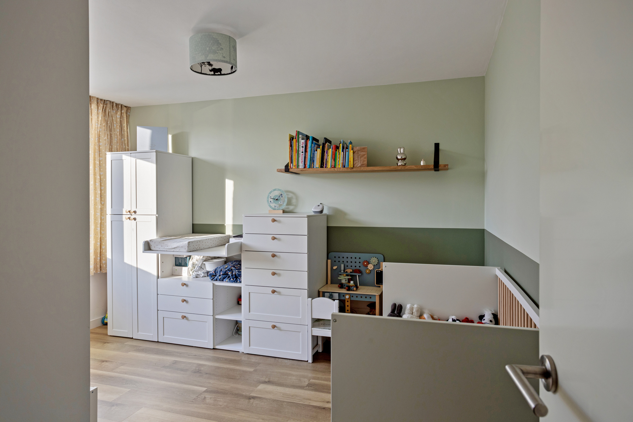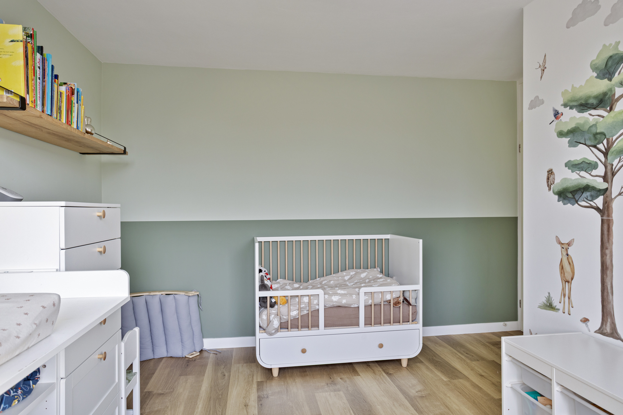 2e Verdieping: overloop. Drie slaapkamers ter grootte van circa 5,5 m², 8 m² en 12 m², waarvan één voorzien van vaste kast en één met vlizotrap naar de bergruimte in de nok. Aparte wasruimte met vaste kast t.b.v. de warmtevoorziening.