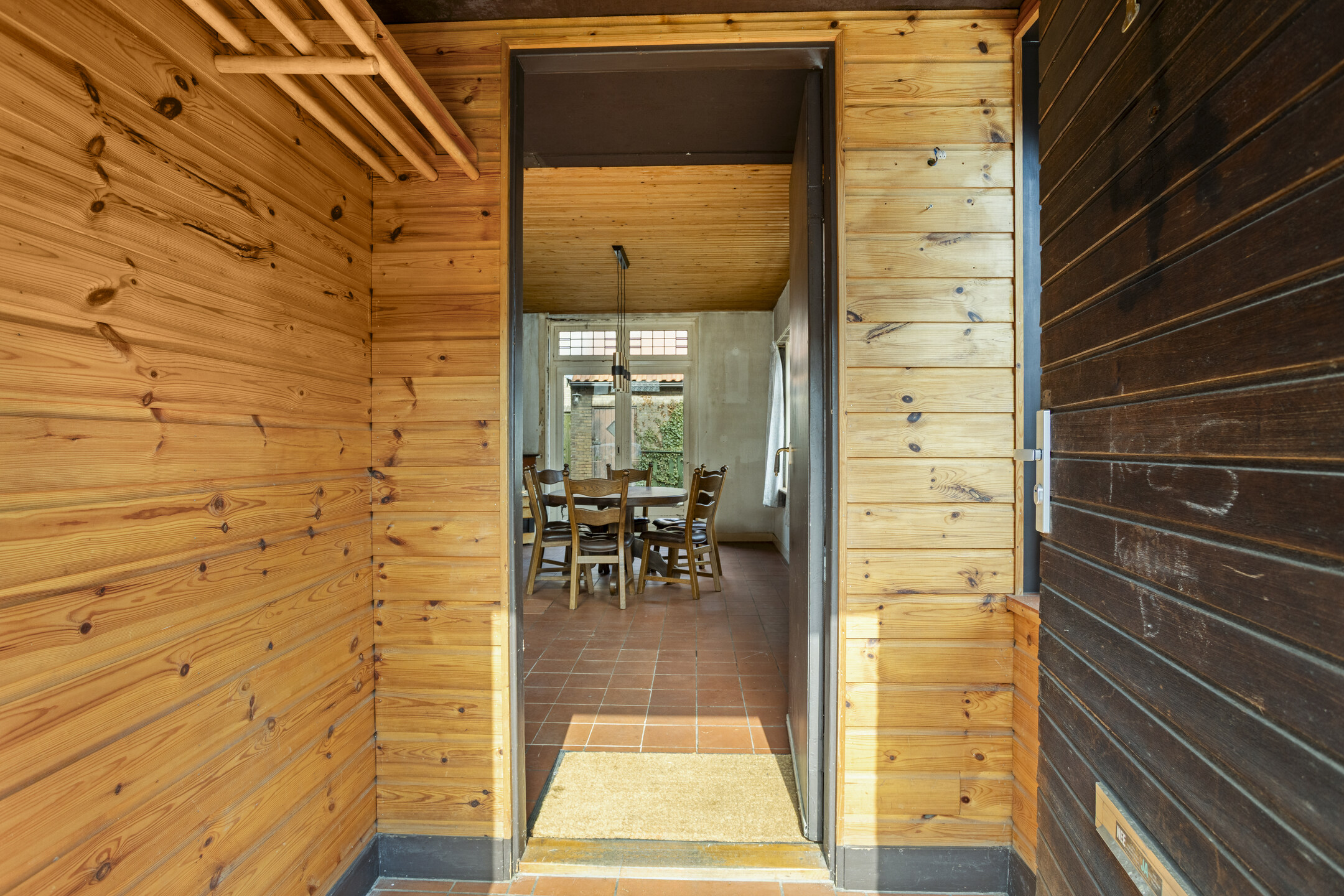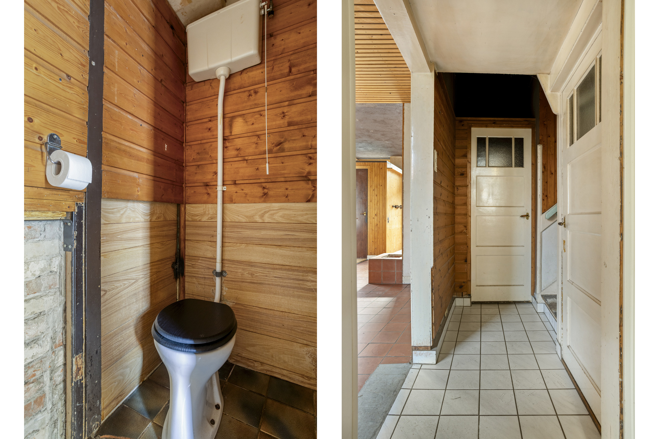 Begane grond: entree met overkapping. Ruime woonkamer met aan de voorzijde de zithoek met openhaard en aan de achterzijde de eethoek met openslaande tuindeuren. Tussenhal met trapopgang naar de 1e verdieping, toegang tot de kelder en het toilet. Keuken met 4-pits gaskookplaat en tuindeur.