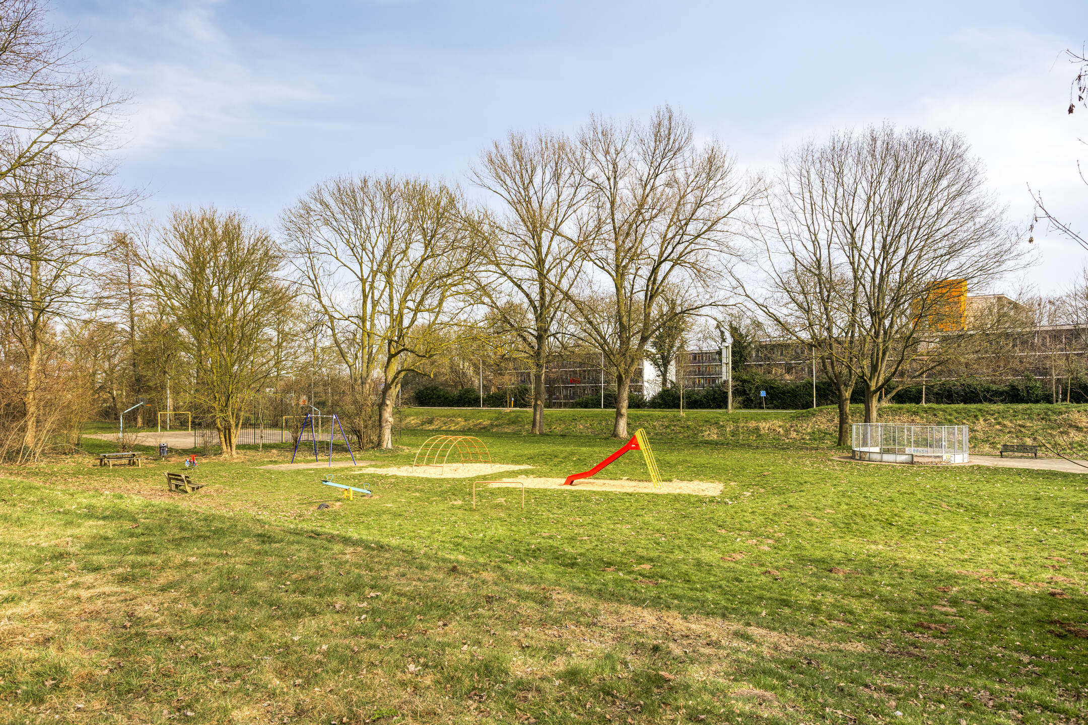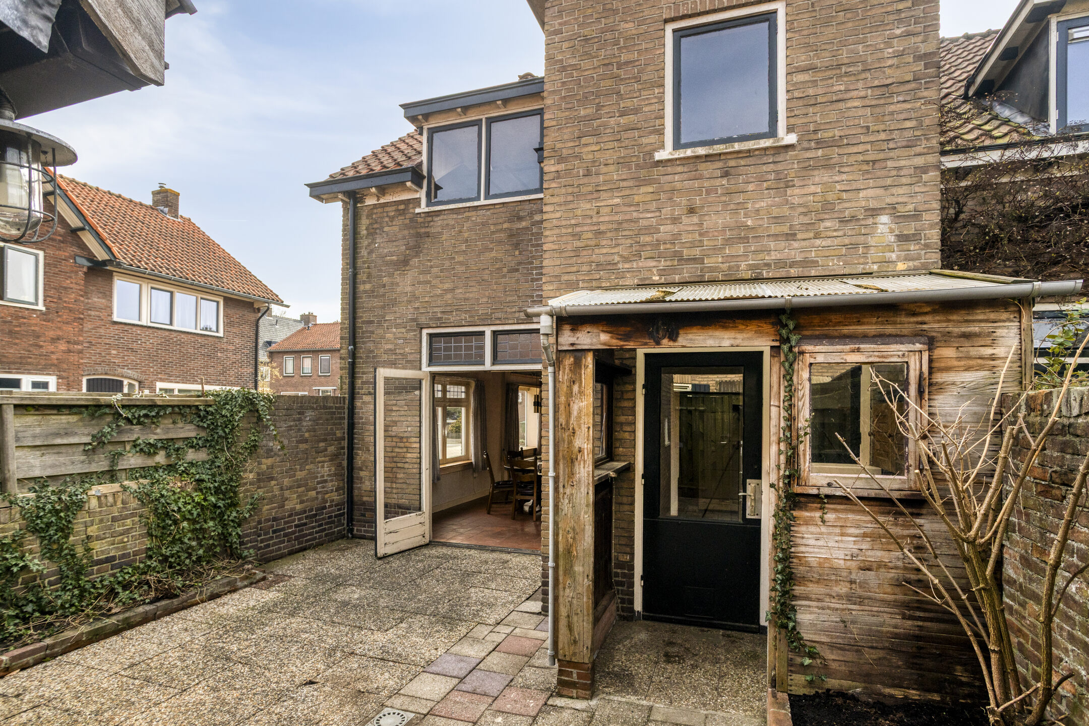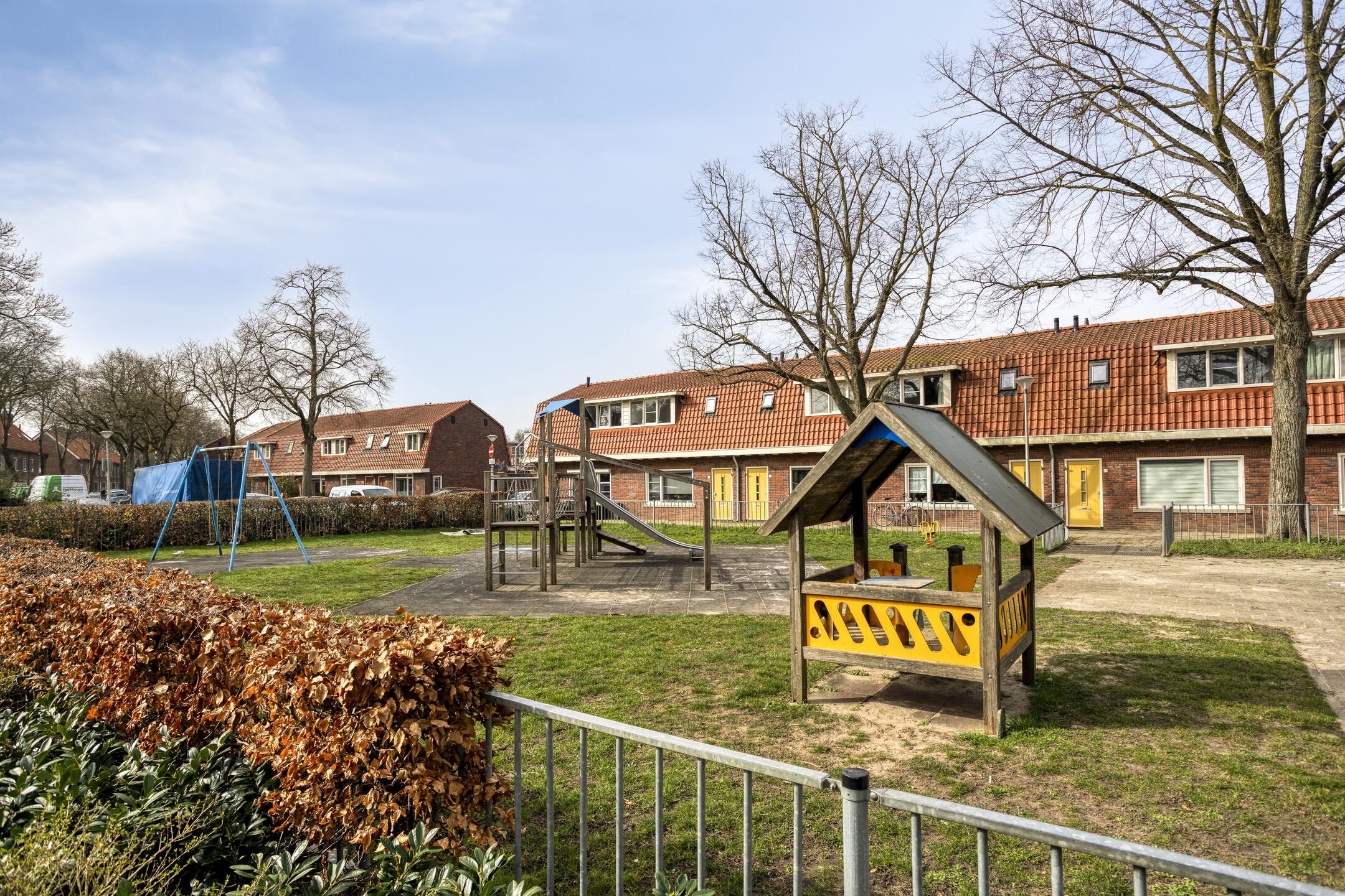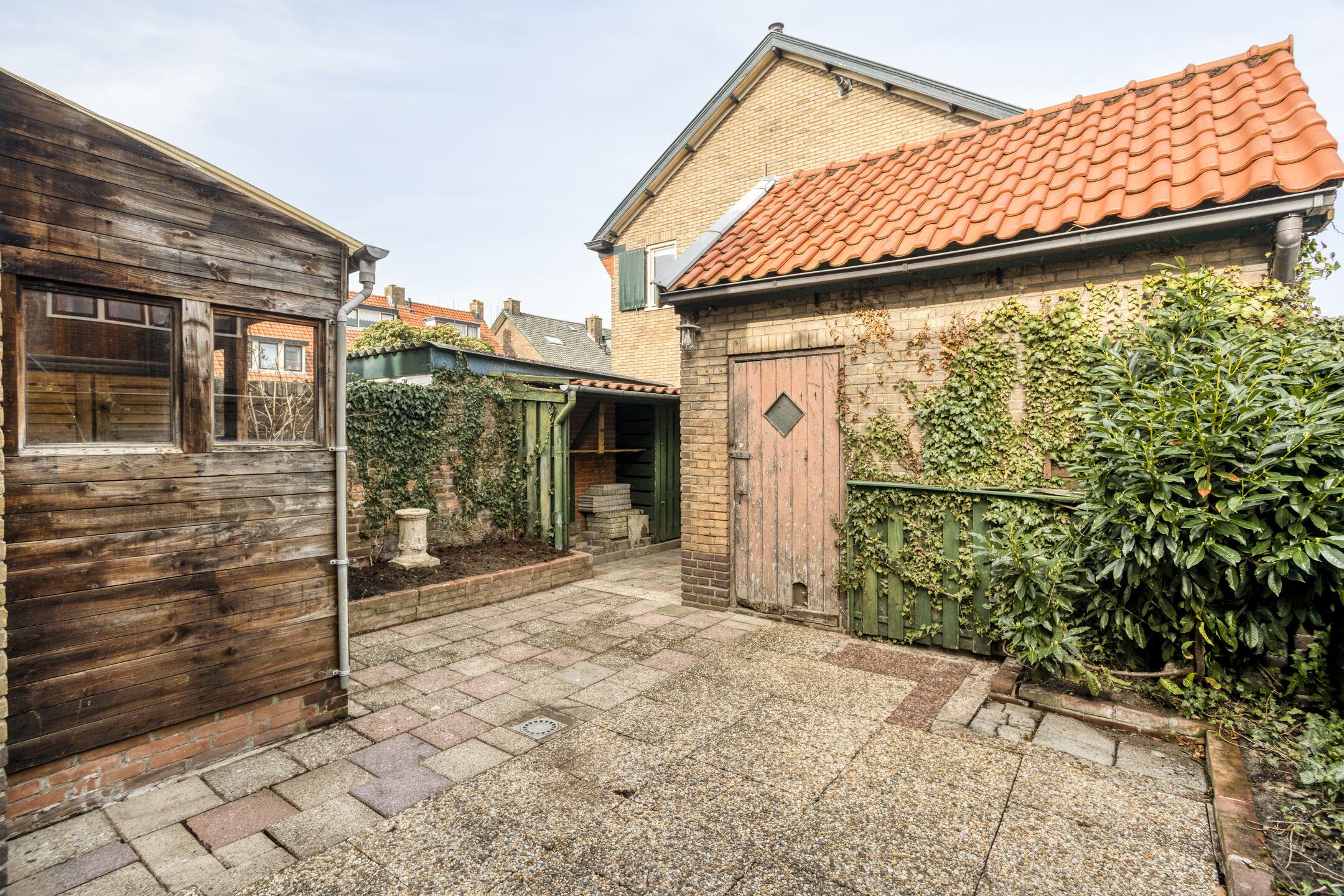 Onderhoudsvriendelijke achtertuin met terras bij de achtergevel, borders, stenen berging en achterom. Parkeren is mogelijk in de straat op de openbare parkeervoorzieningen.