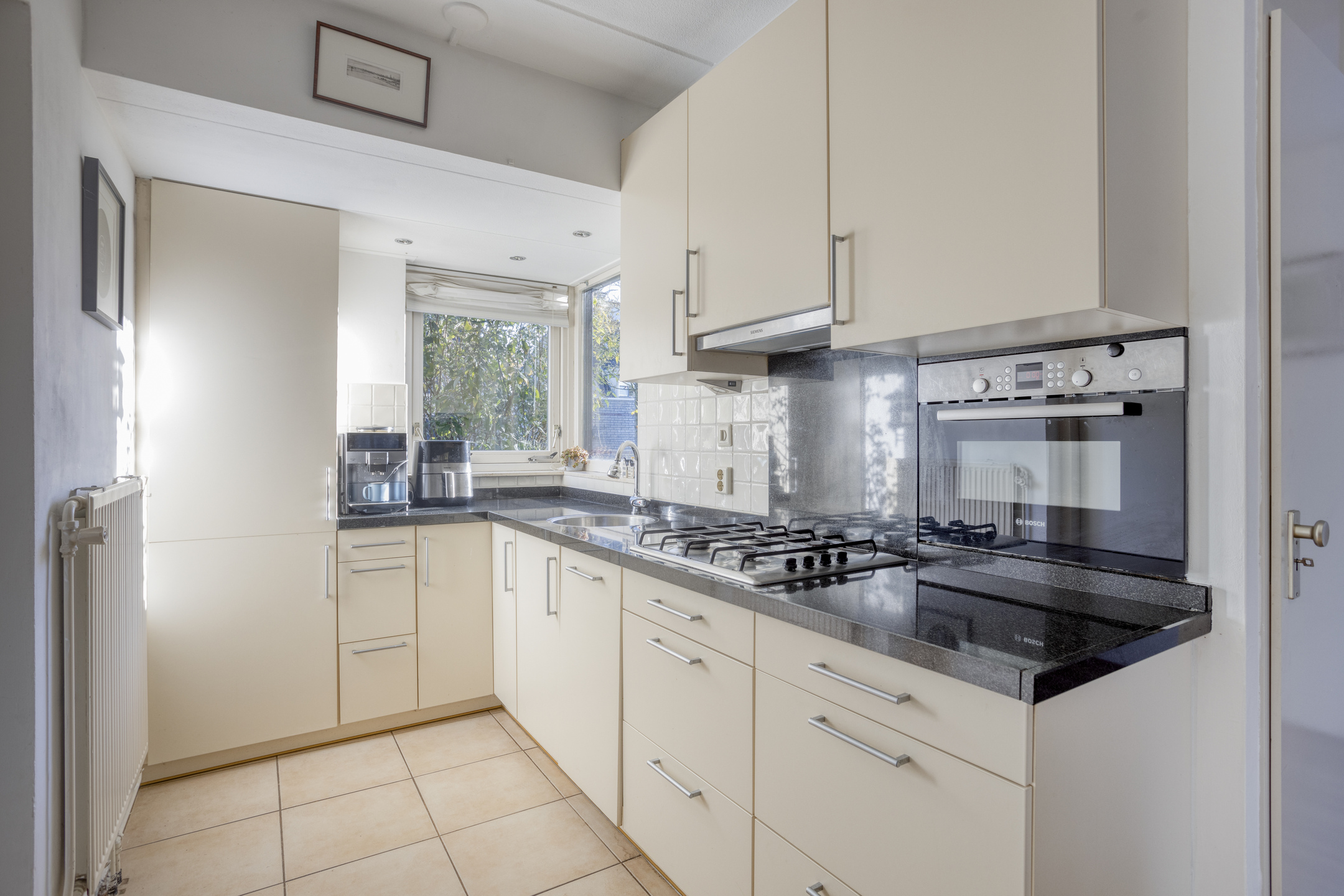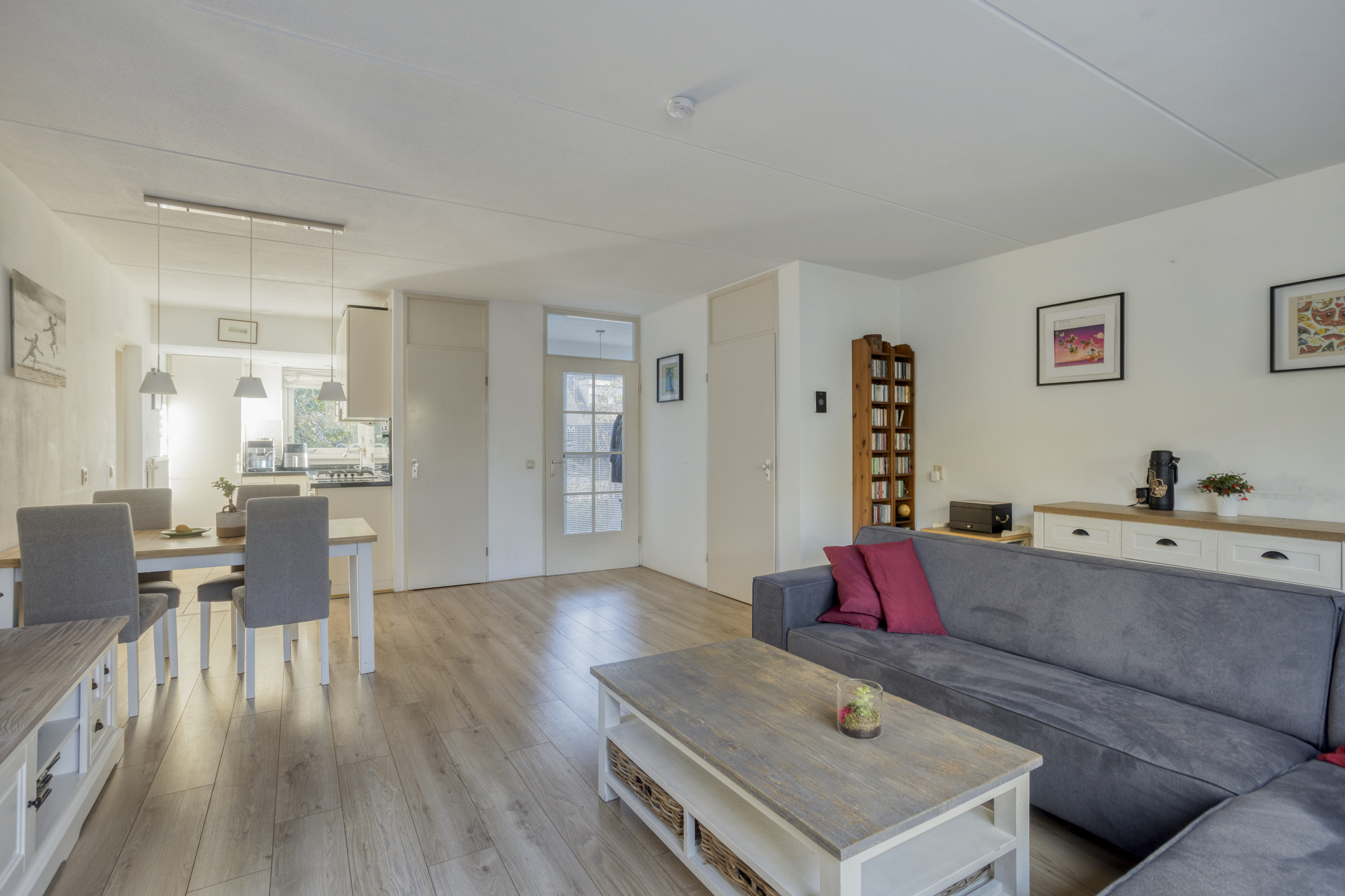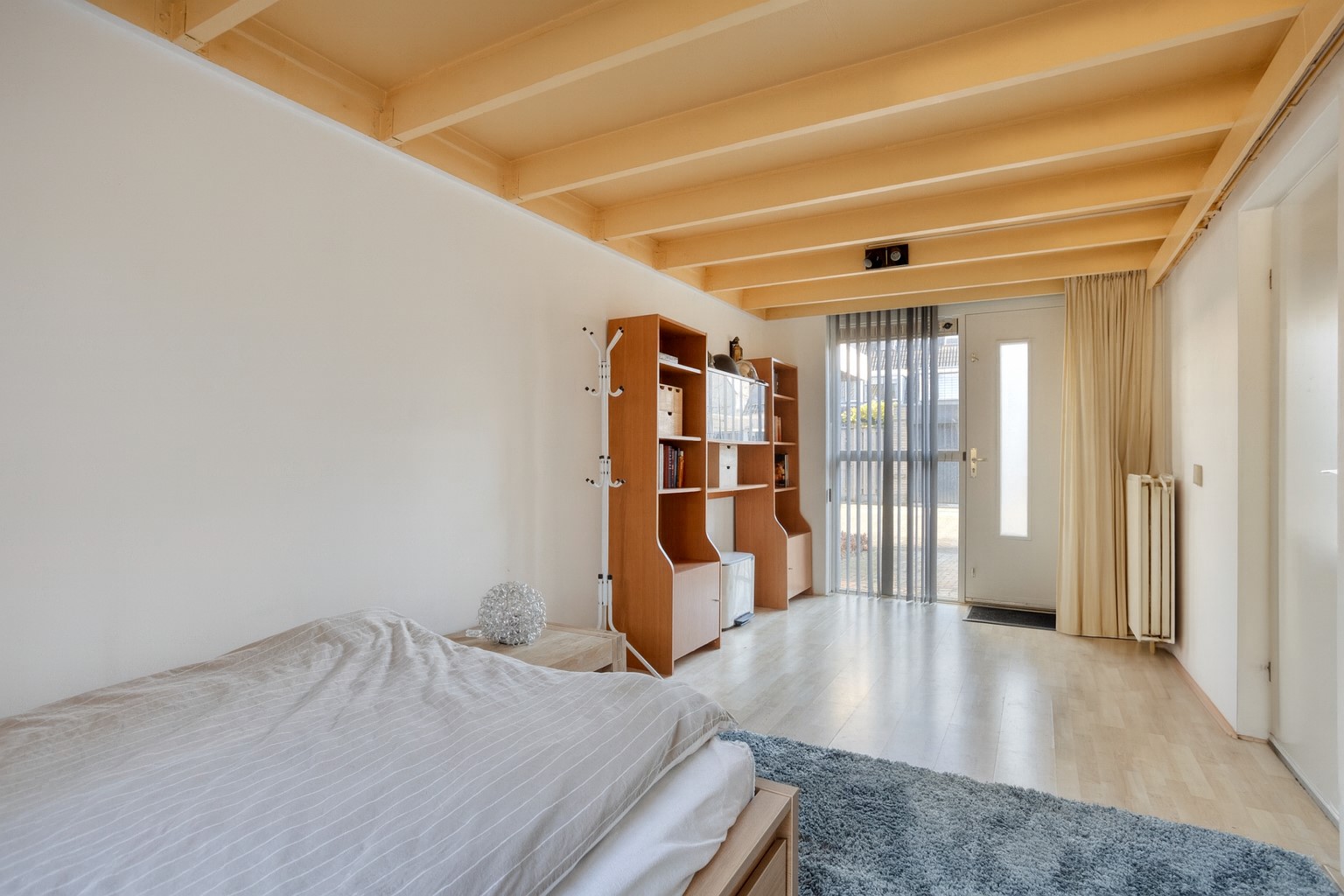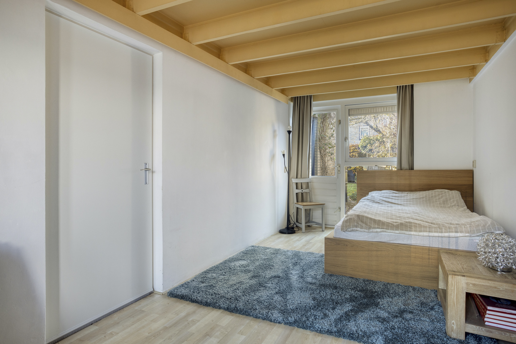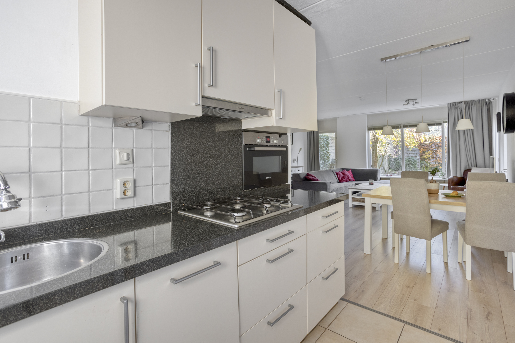 Ruime tuingerichte woonkamer voorzien van een laminaat vloer, provisiekast en tuindeur. Moderne open keuken aan de voorzijde, voorzien van 4-pits gaskookplaat, afzuigkap, combi-oven, koel-vriescombinatie en vaatwasser. Werk-/slaapkamer ter grootte van circa 20 m², met eigen voor- en achterdeur!