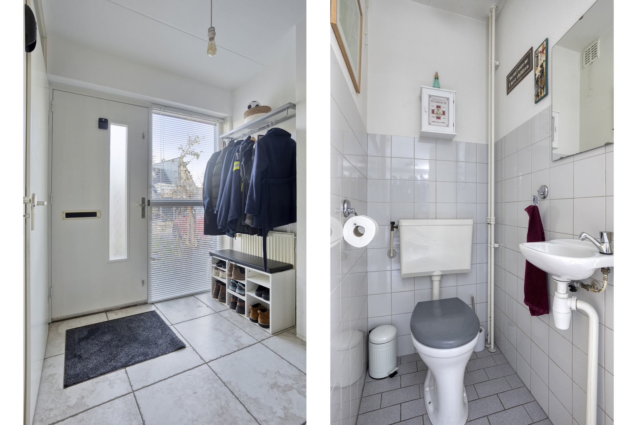 Begane grond: entree, hal met tegelvloer, meterkast, trapopgang naar de 1e verdieping en toilet voorzien van fonteintje.