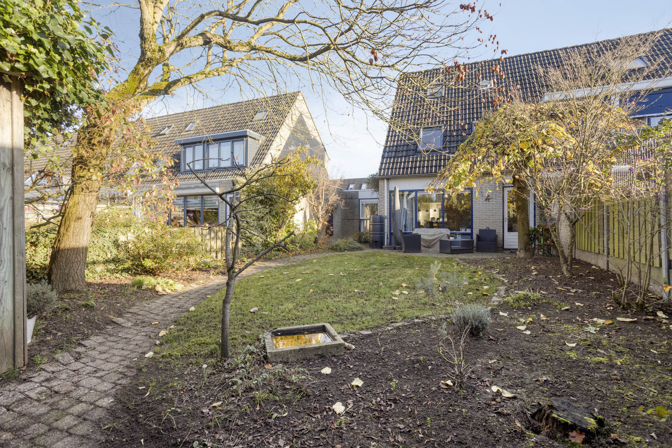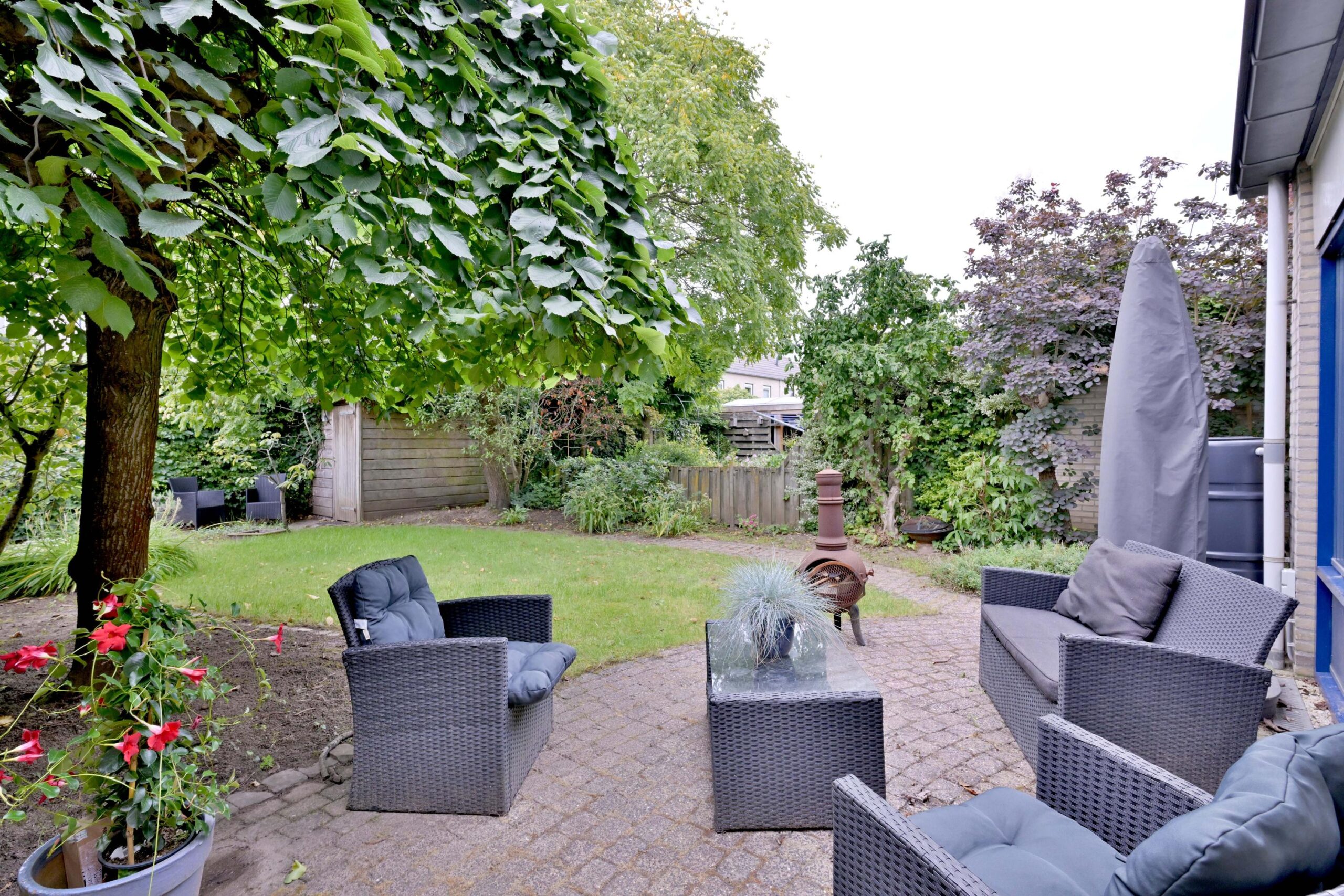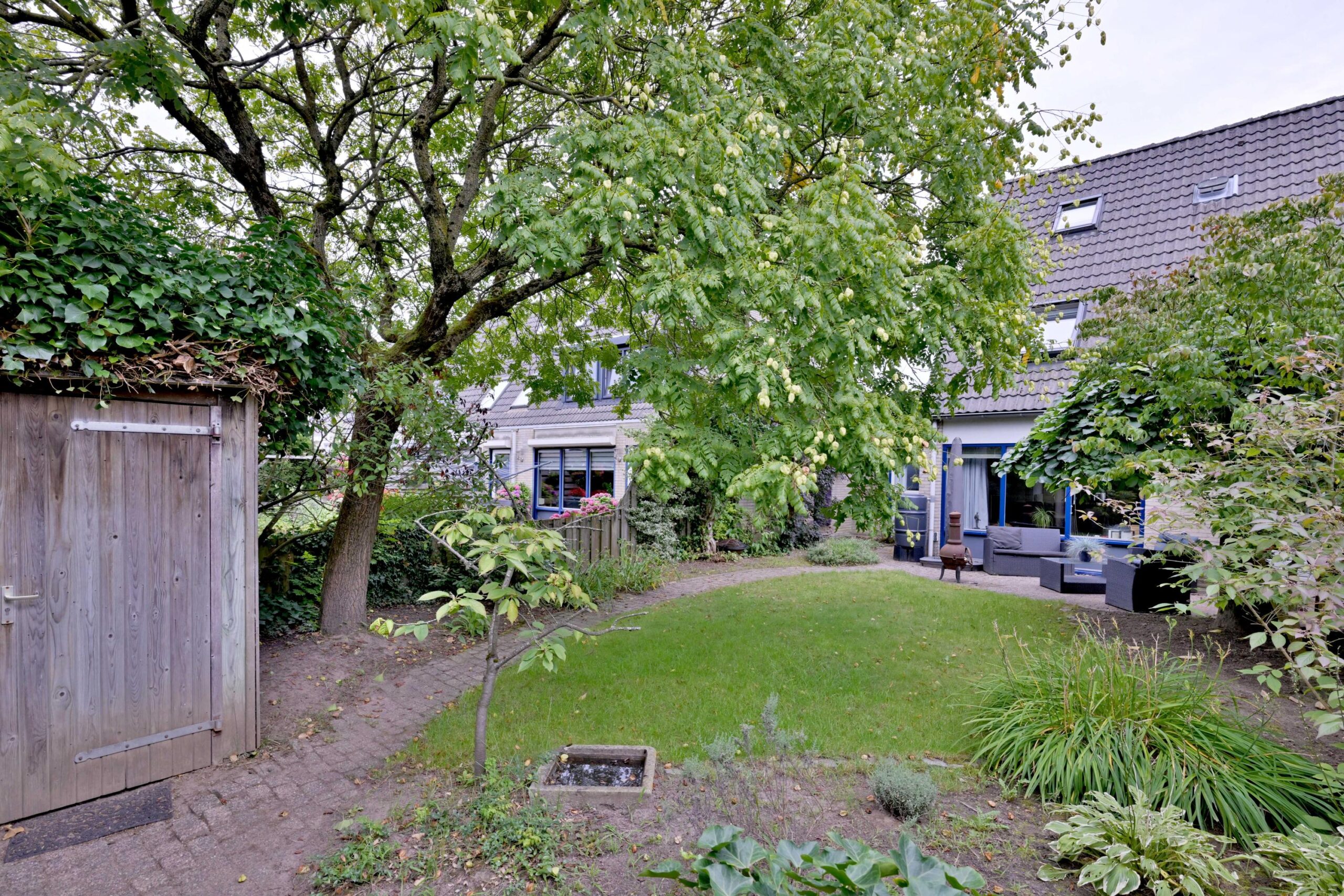 De woning beschikt over een fraai aangelegde achtertuin met terras aan de achtergevel, meerdere borders, gazon, houten berging en achterom. Aan de voorzijde is ook een siertuin aanwezig en parkeerruimte voor één personenauto op eigen terrein.