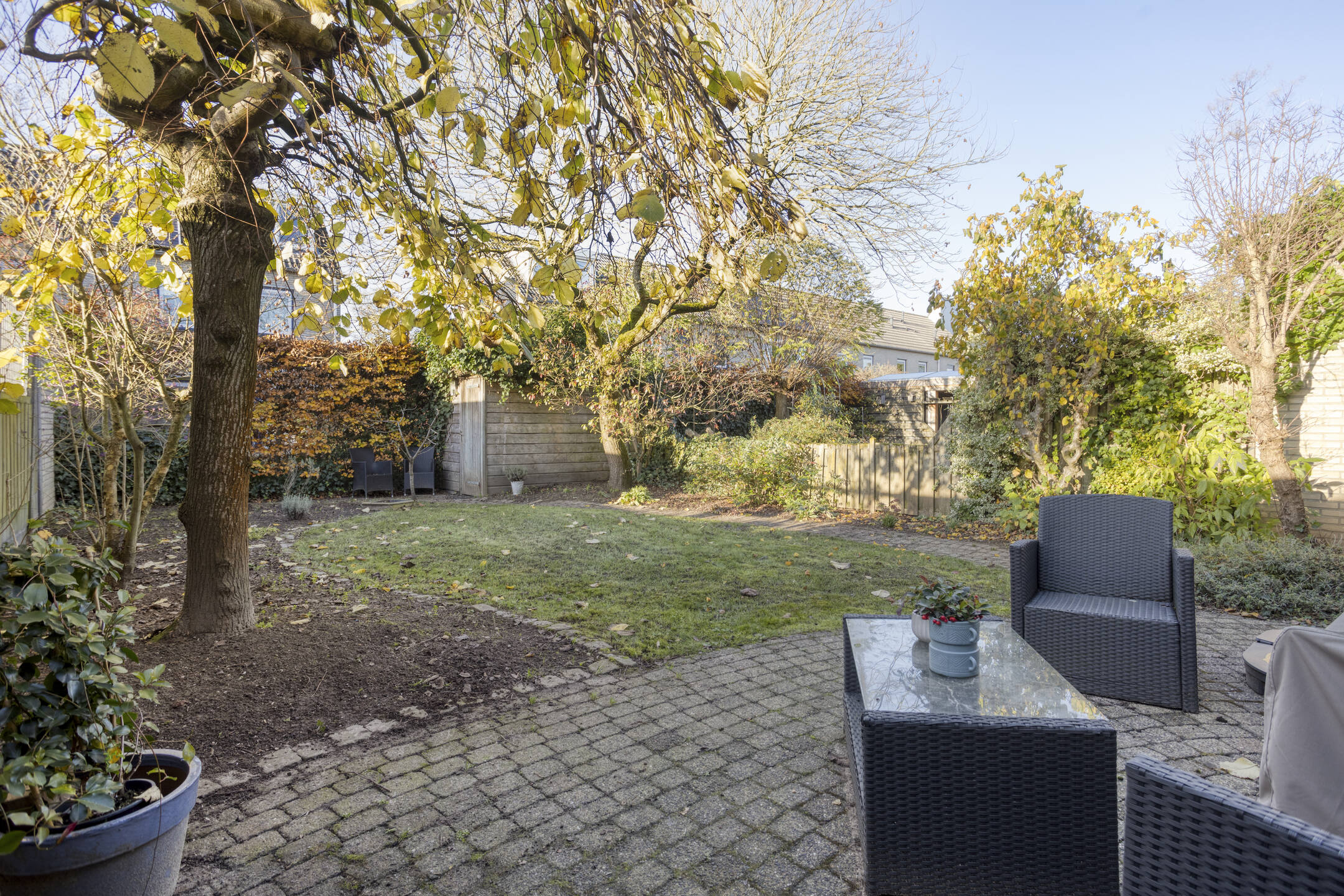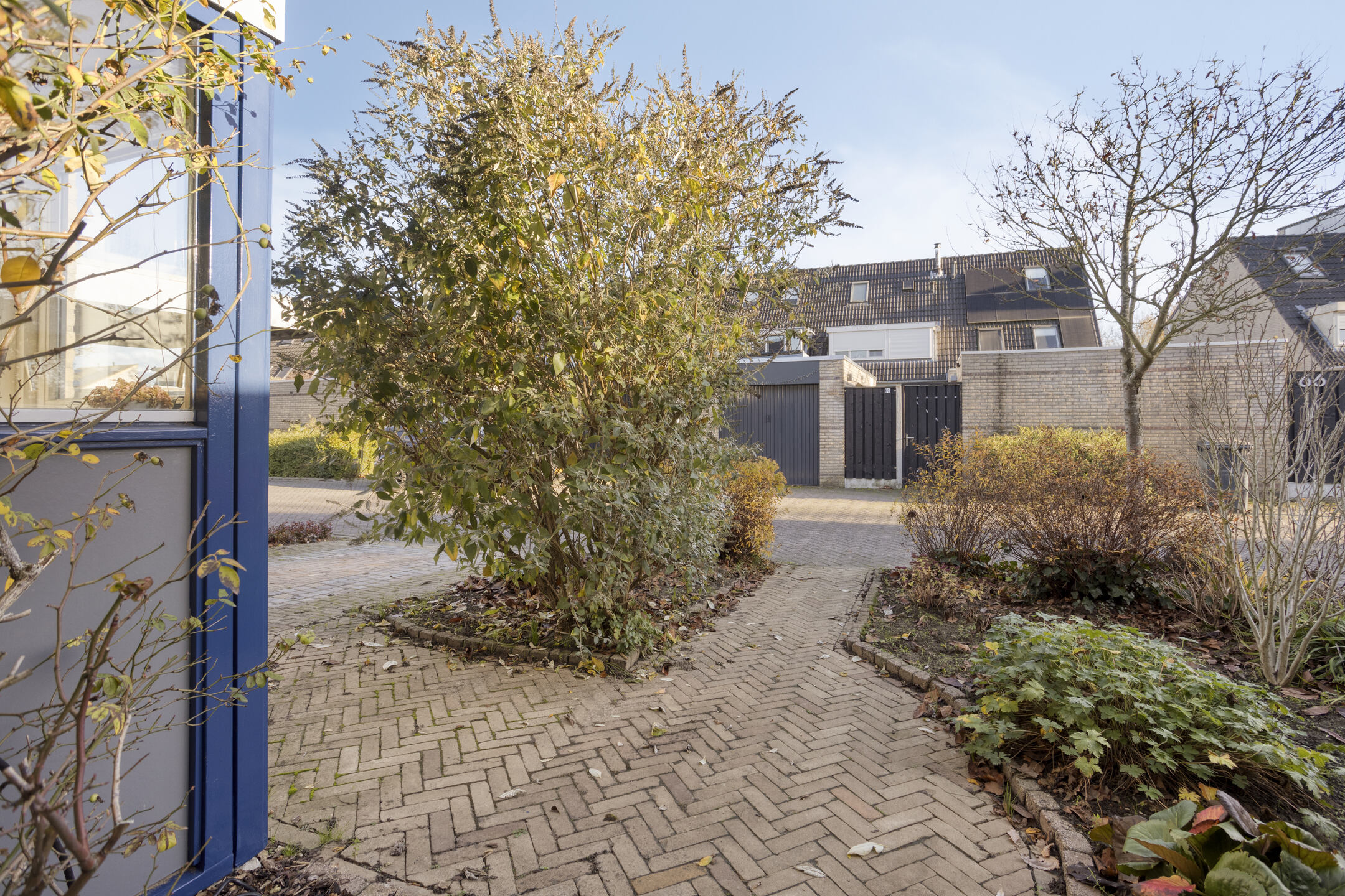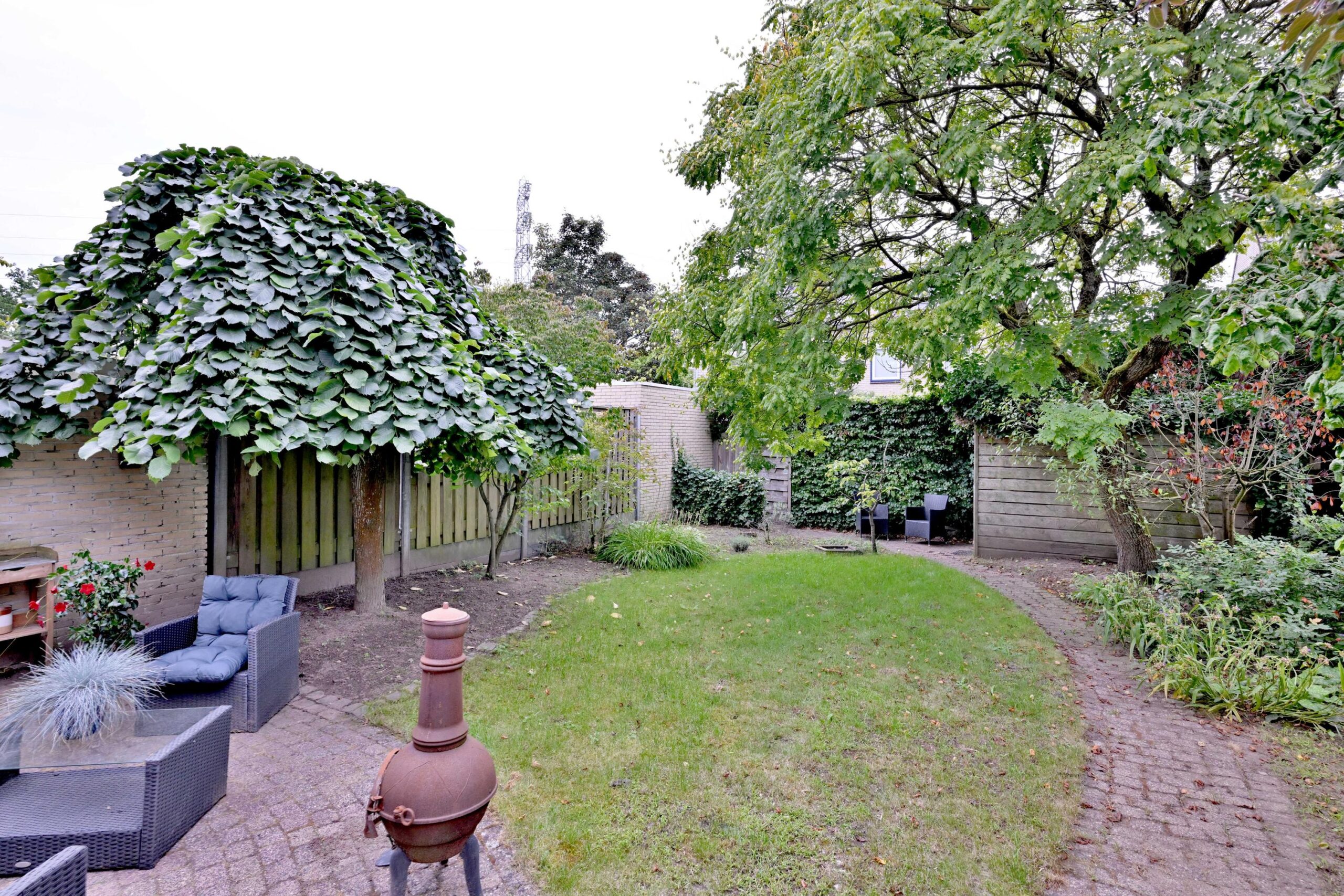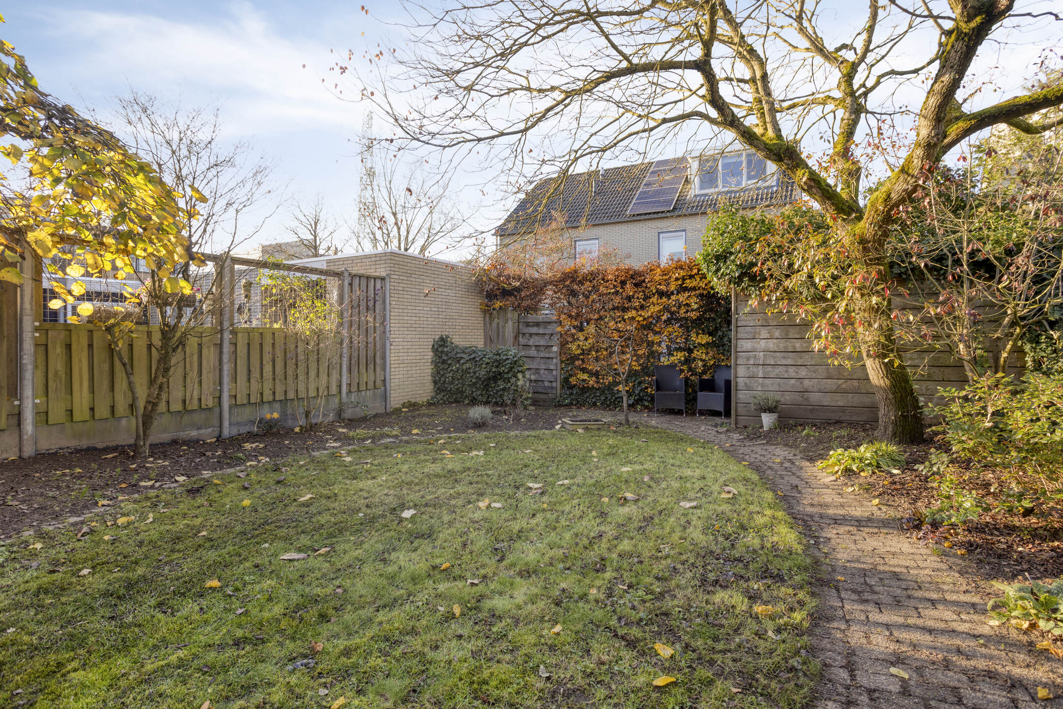 De woning beschikt over een fraai aangelegde achtertuin met terras aan de achtergevel, meerdere borders, gazon, houten berging en achterom. Aan de voorzijde is ook een siertuin aanwezig en parkeerruimte voor één personenauto op eigen terrein.