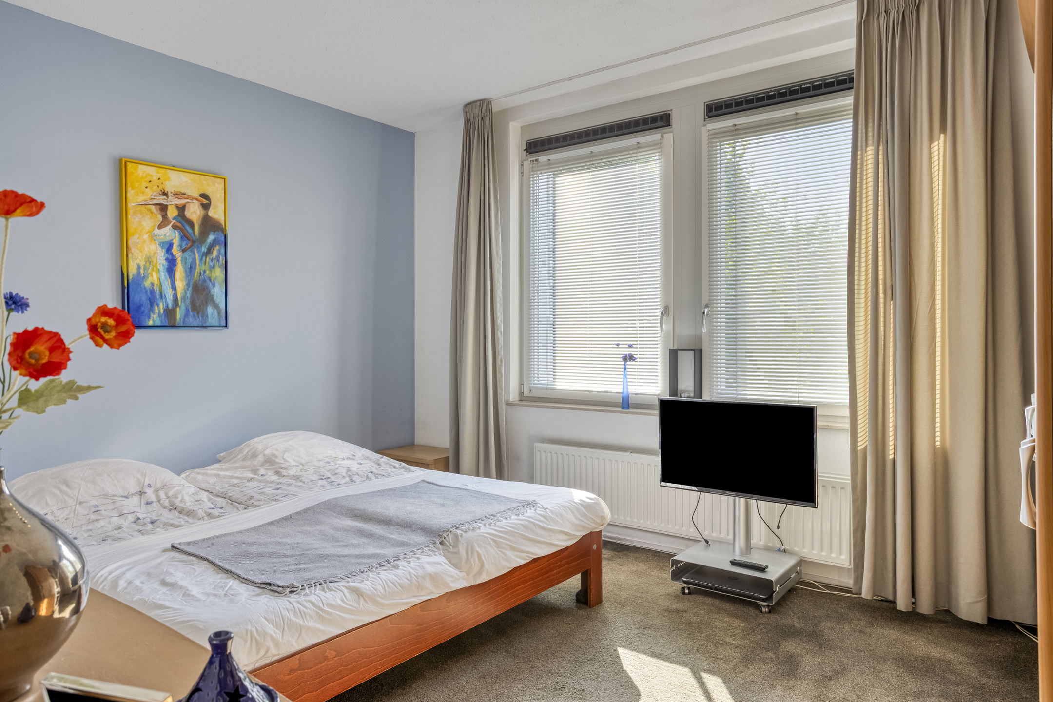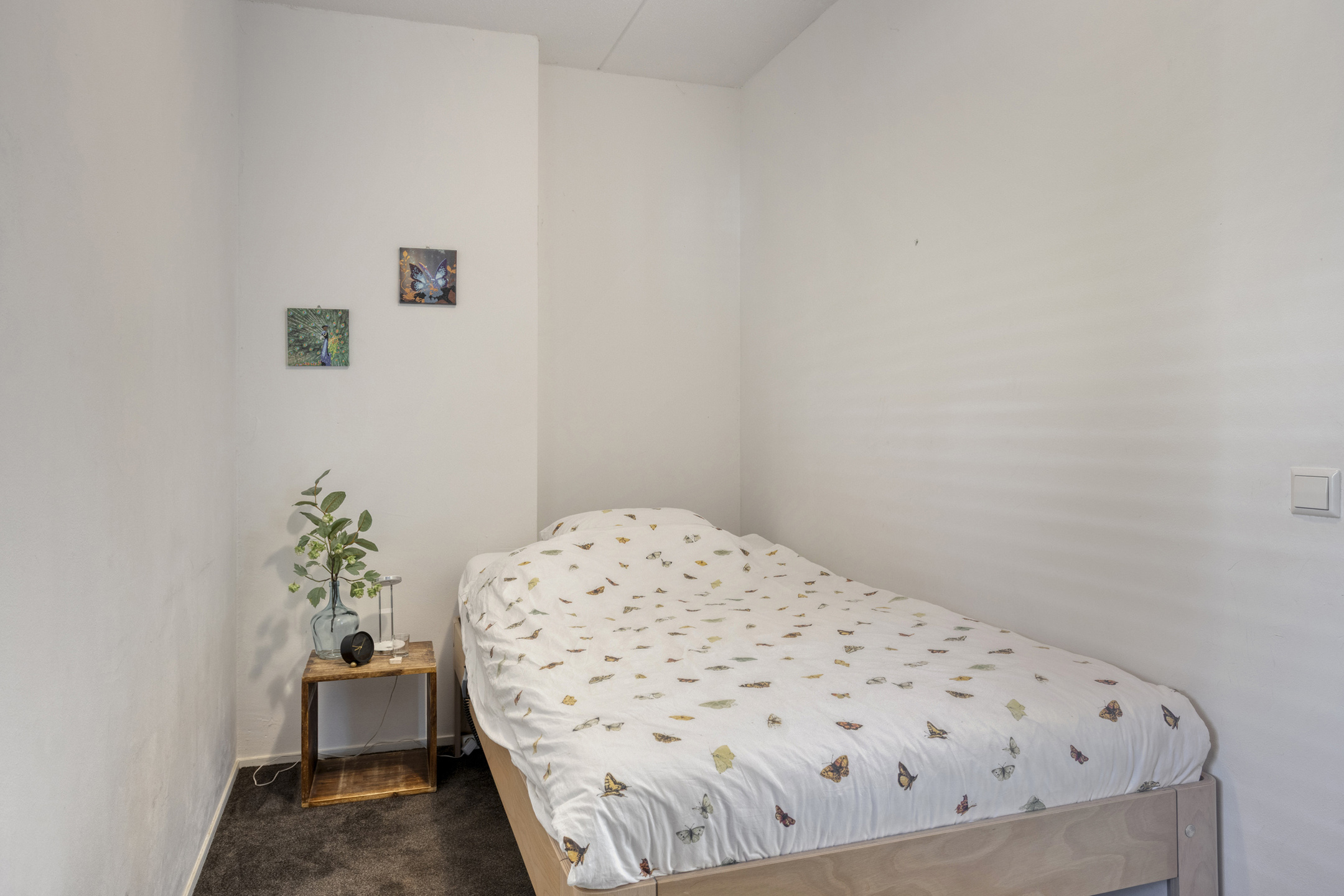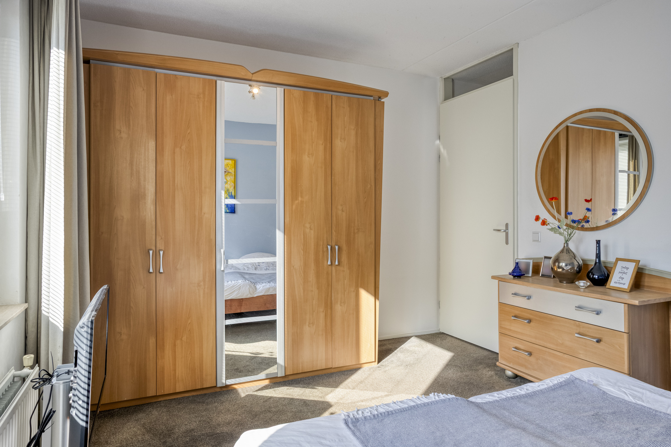Twee slaapkamers ter grootte van circa 8 m² en 14 m², beiden voorzien van vloerbedekking. Keurige badkamer met inloopdouche, dubbel-wastafelmeubel, 2e toilet en handdoekenradiator.