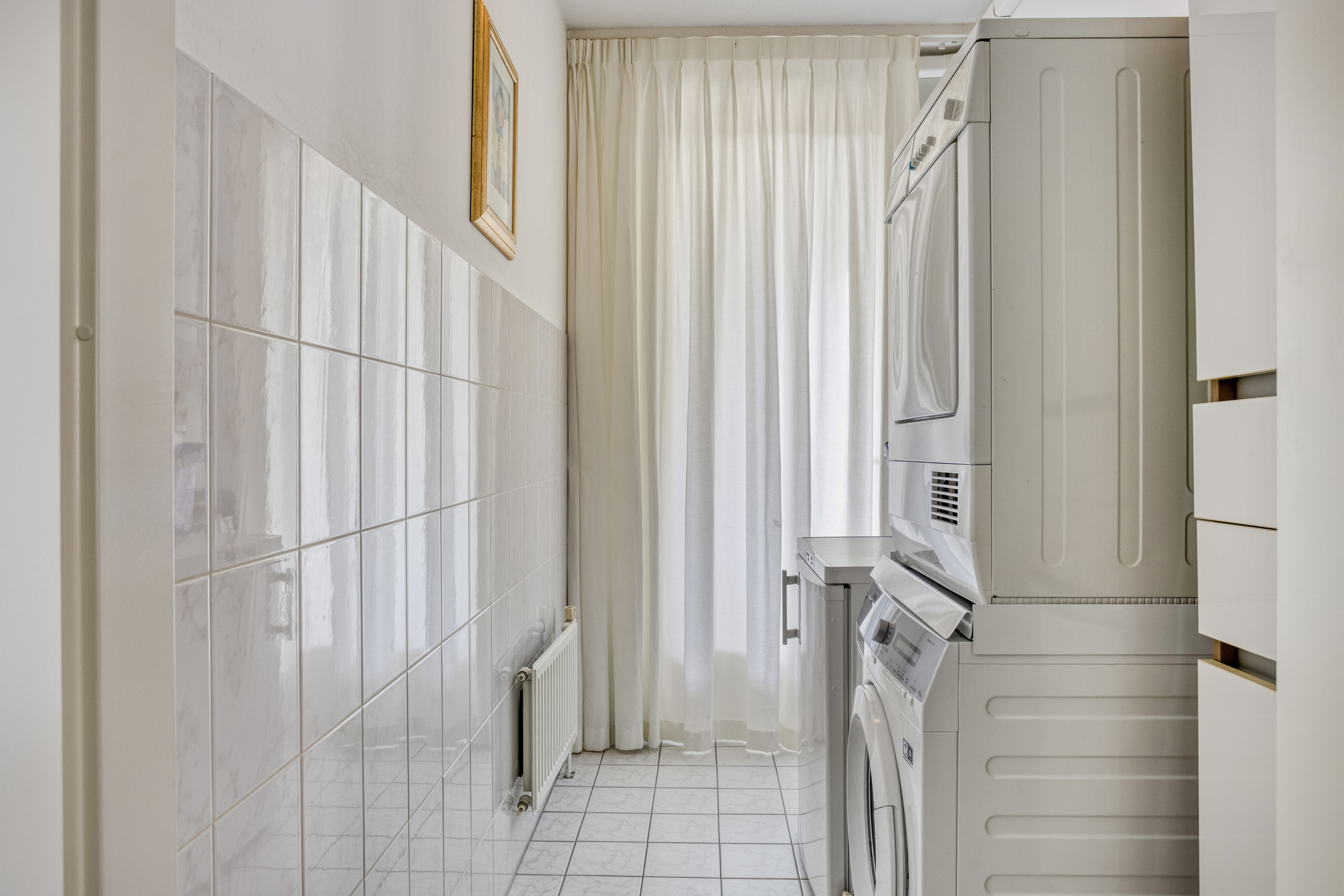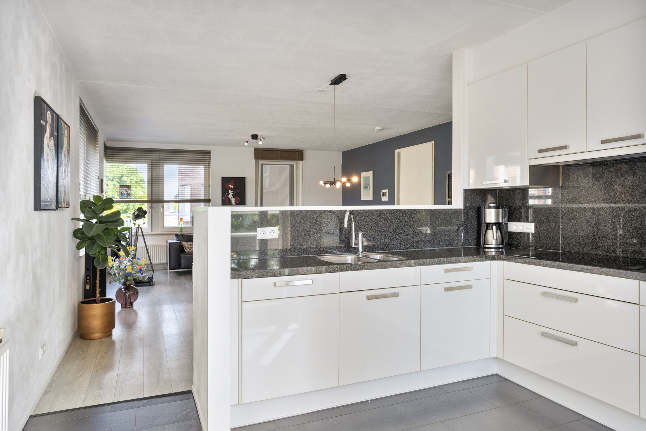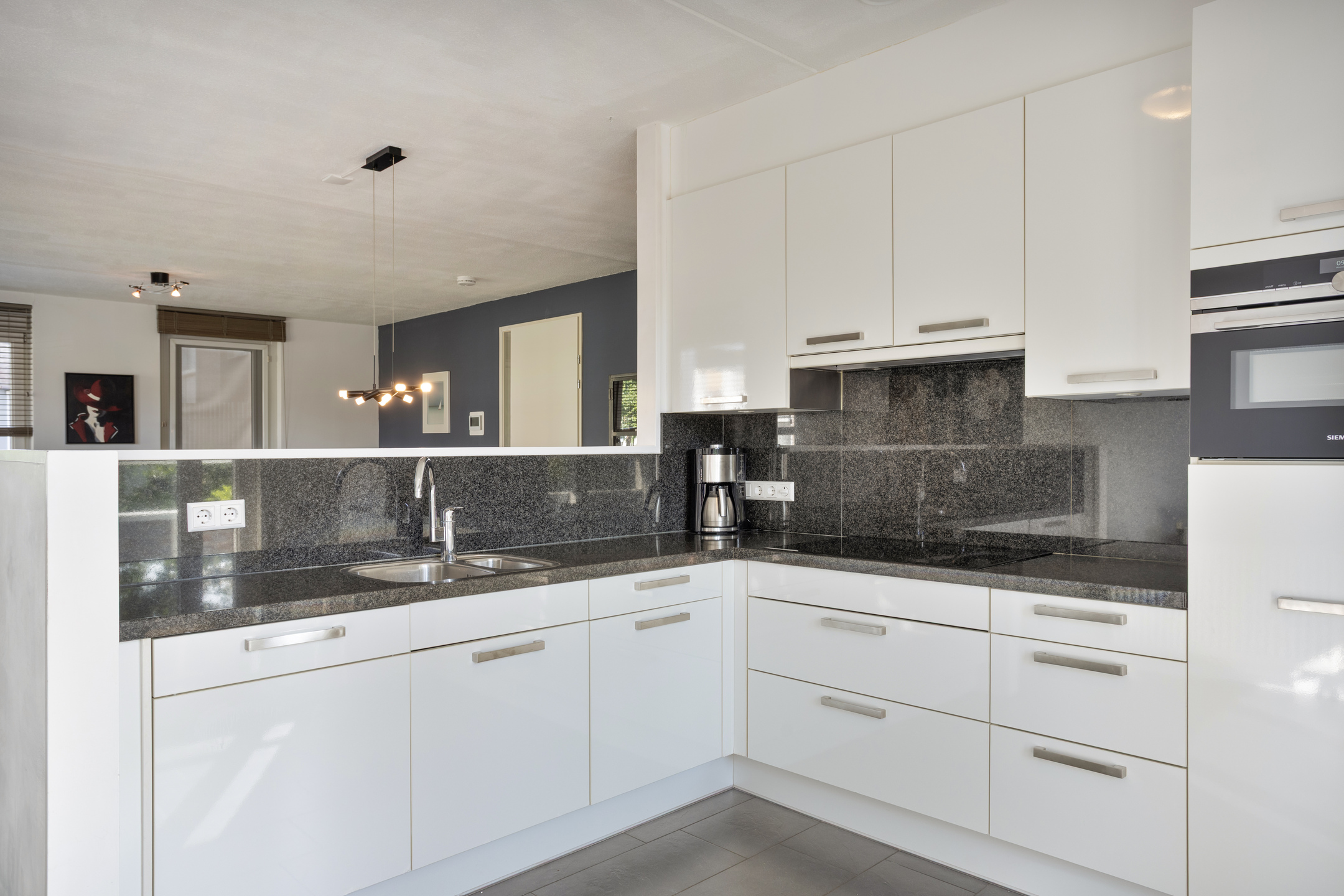 Nette open keuken met schuifpui naar het balkon aan de voorzijde, voorzien van een massief granieten aanrechtblad, inductiekookplaat (vervangen in 2024), afzuigkap, combi-oven (vervangen in 2024), koelkast en vaatwasser. Bijkeuken met aansluiting voor de wasapparatuur en toegang tot het balkon.
