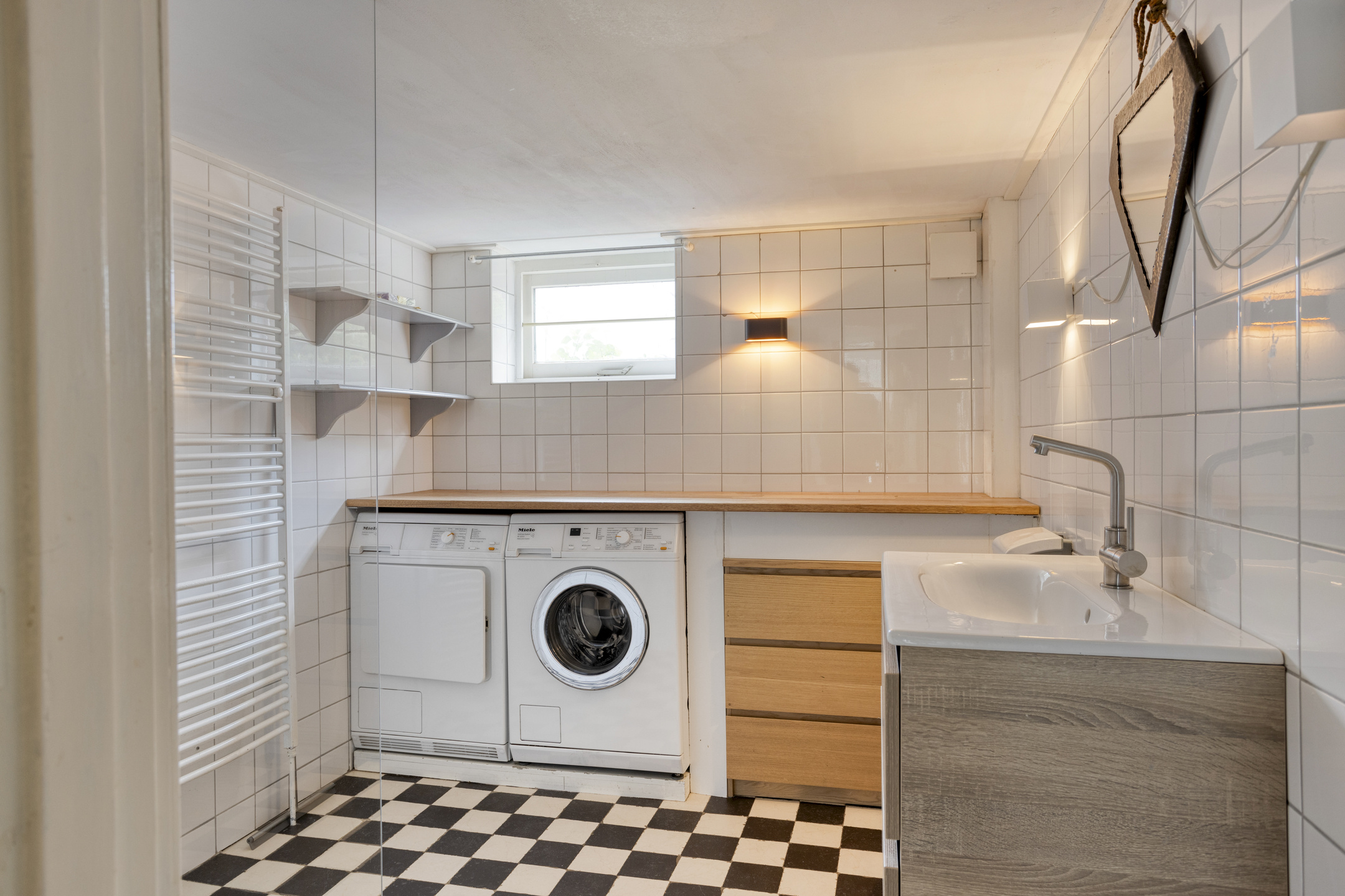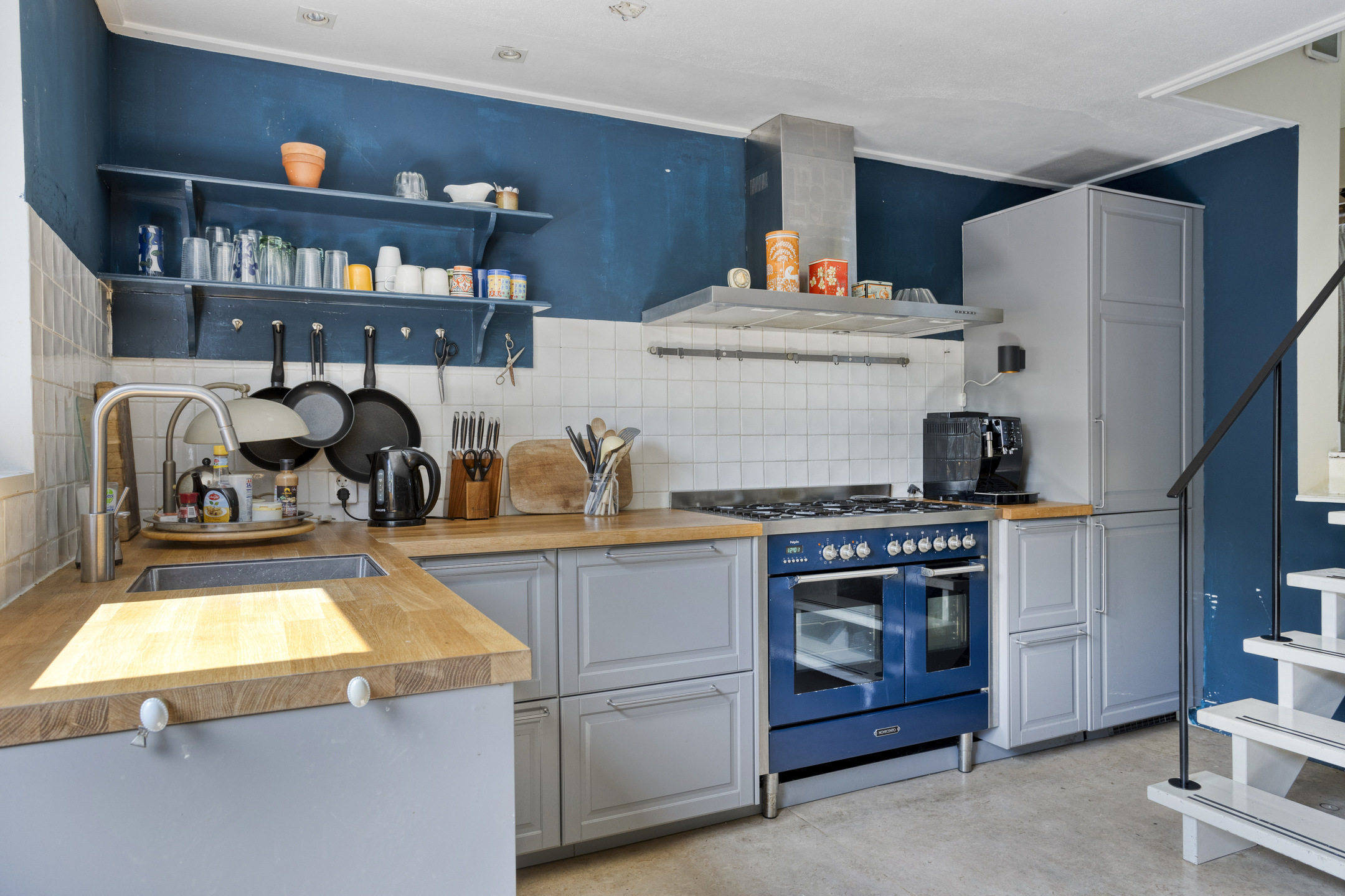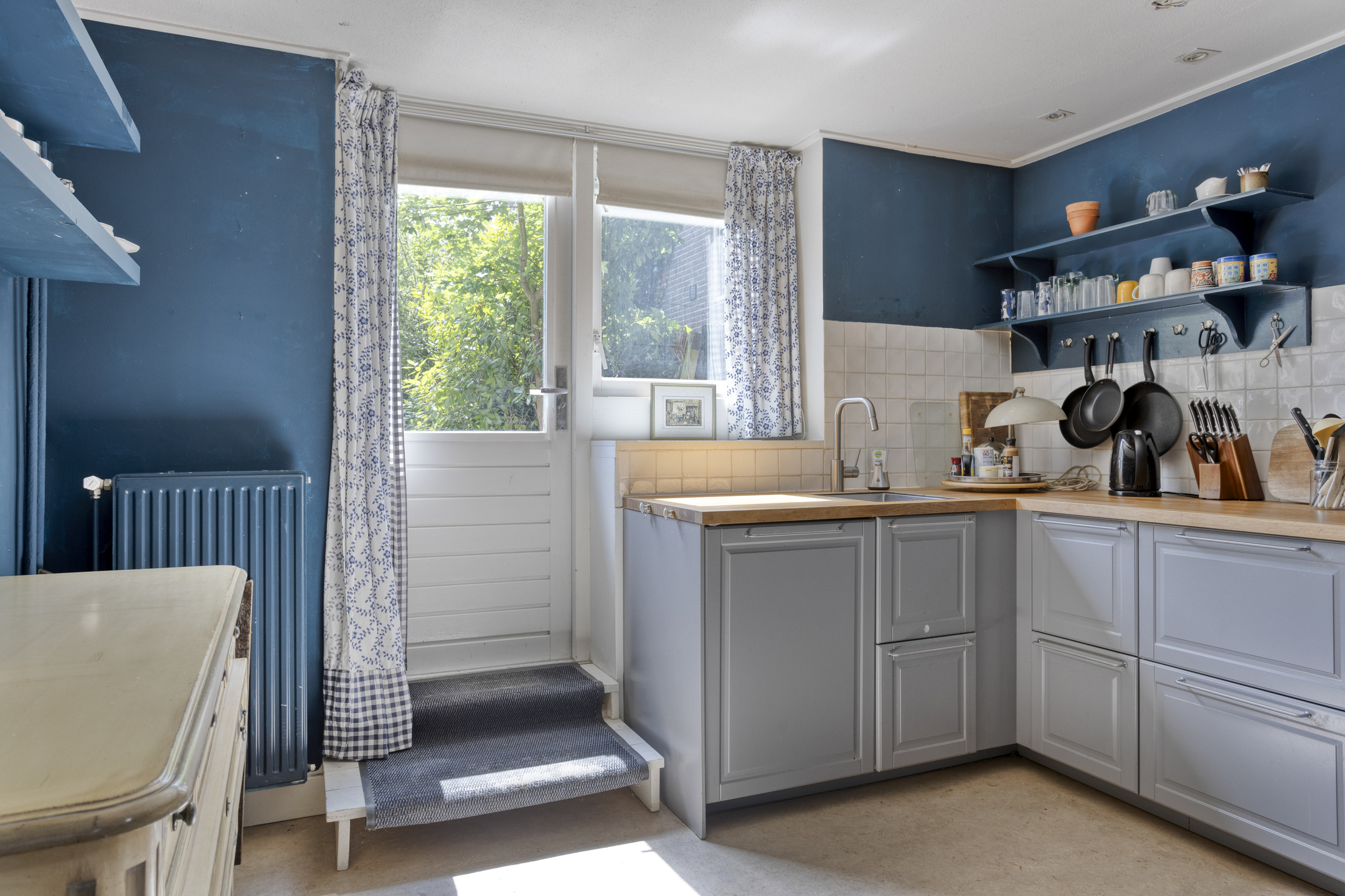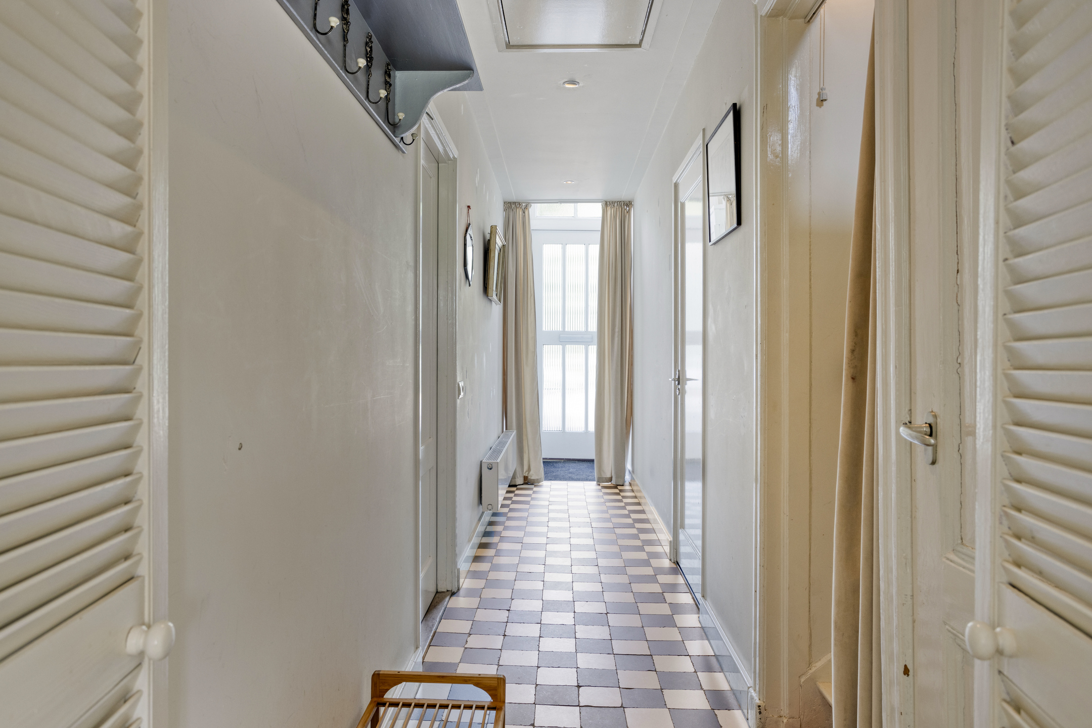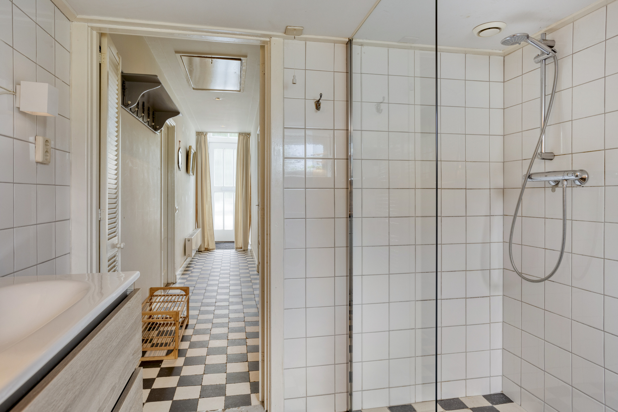 Begane grond: entree, hal voorzien van plavuizenvloer, toilet voorzien van fonteintje. De hal biedt toegang tot de zitkamer, badkamer, kelder en de trap naar de slaapkamer. In de hal bevindt zich tevens de toegang, via een vlizotrap, naar de inpandige bergruimte. De beneden woning heeft een split-level indeling wat het echt bijzonder maakt en is als volgt ingedeeld: vanuit de woonkamer met houtkachel, houten vloeren en hoge plafonds, zijn de twee niveaus te bereiken. Het hoger gelegen gedeelte aan de achterzijde is op dit moment ingericht als zitkamer, maar kan ook dienen als extra slaapruimte. In het lager gelegen gedeelte is de woonkeuken gesitueerd welke beschikt over een 6-pits gasfornuis met (dubbele) oven, afzuigkap, vriezer, koelkast, vaatwasser en tuindeur. Vanuit de hal is een slaapkamer/werkkamer te bereiken ter grootte van circa 7 m². Fraai aangelegde badkamer voorzien van wastafelmeubel, inloopdouche en aansluiting voor de wasapparatuur.