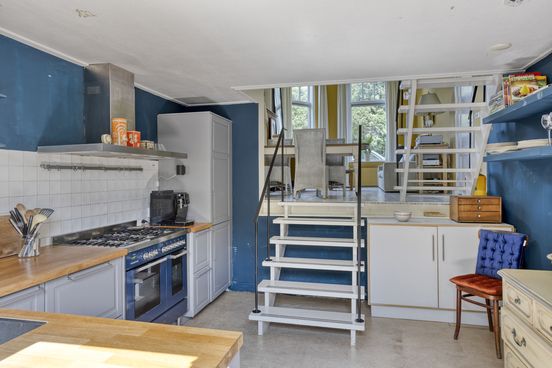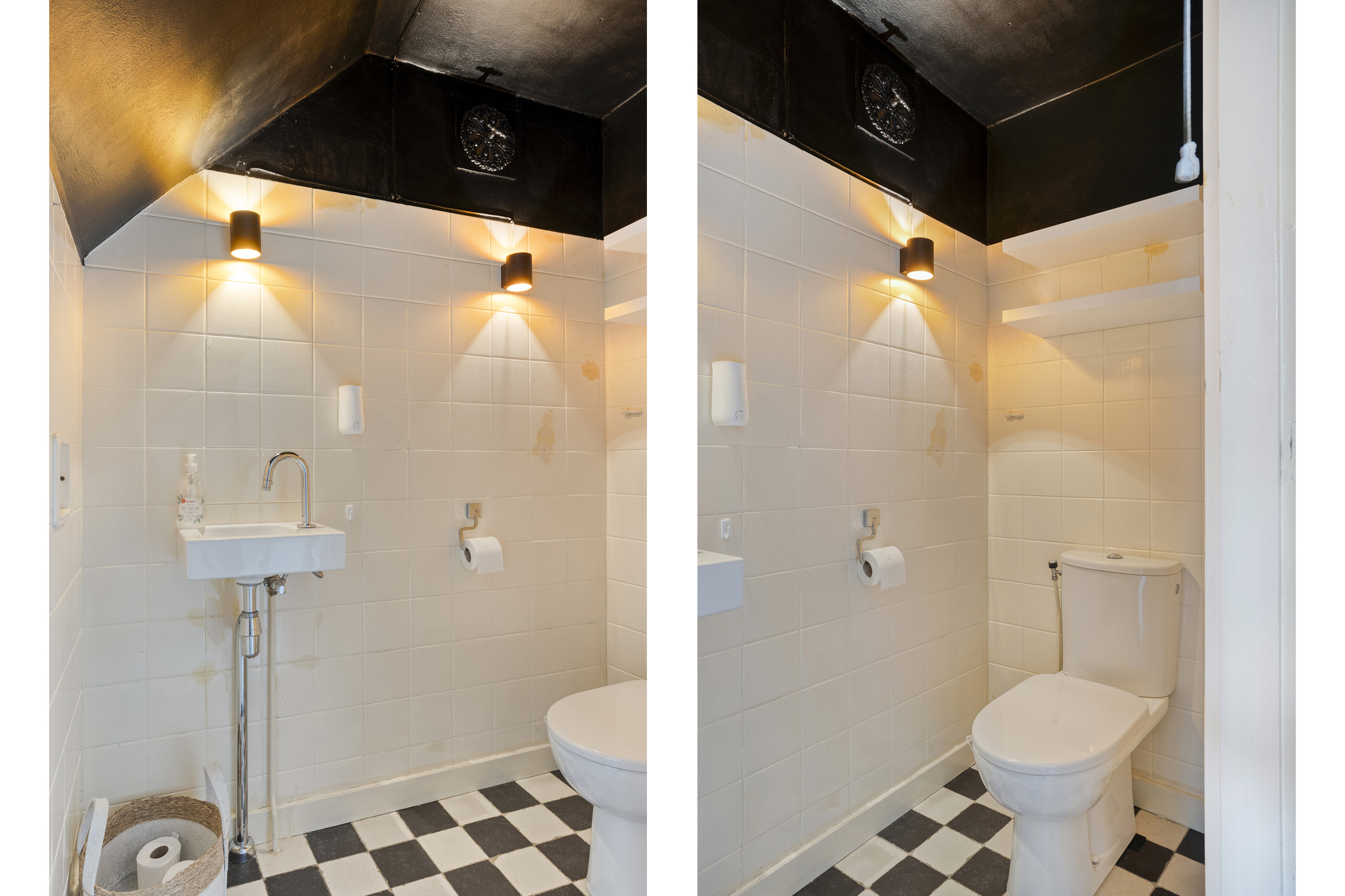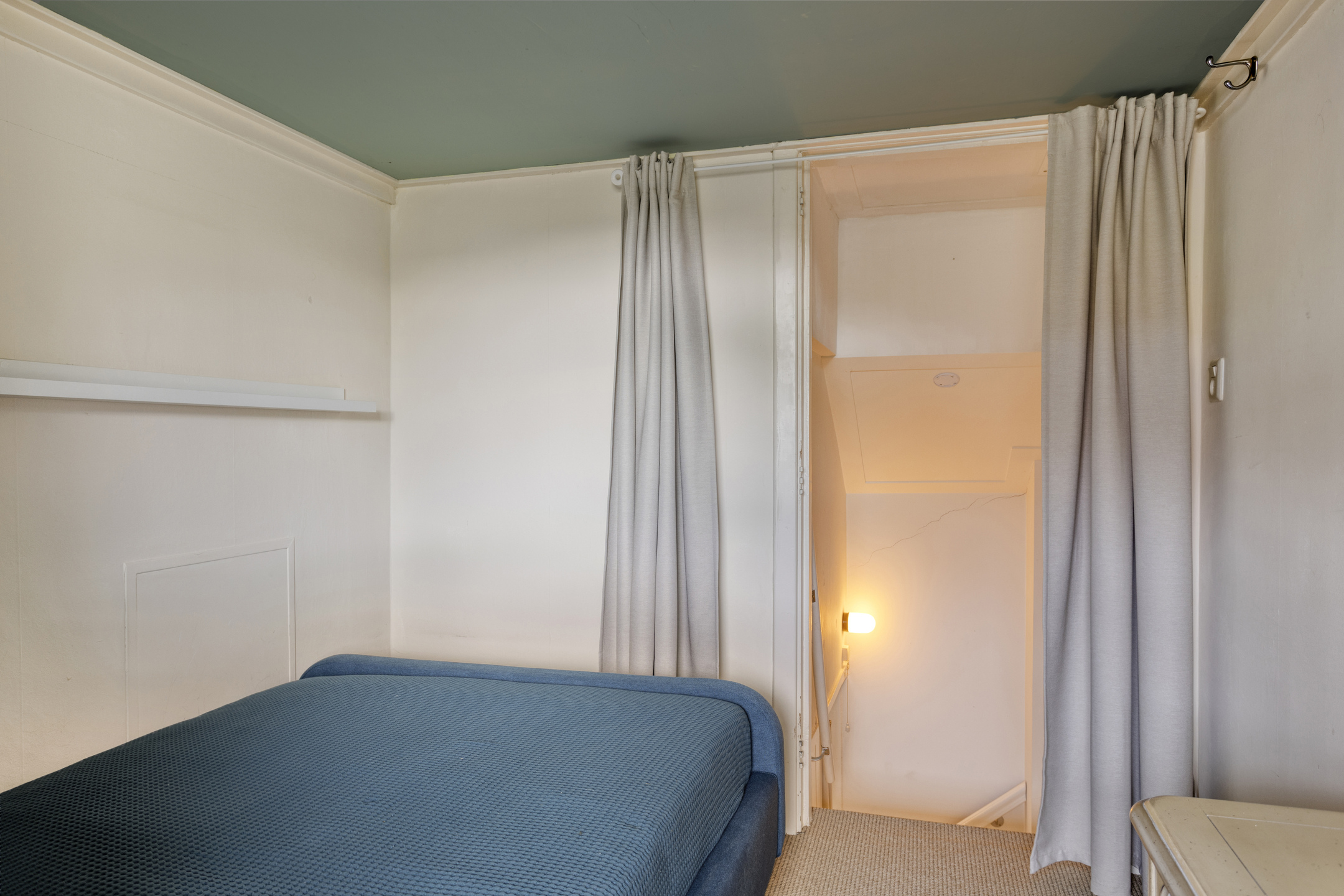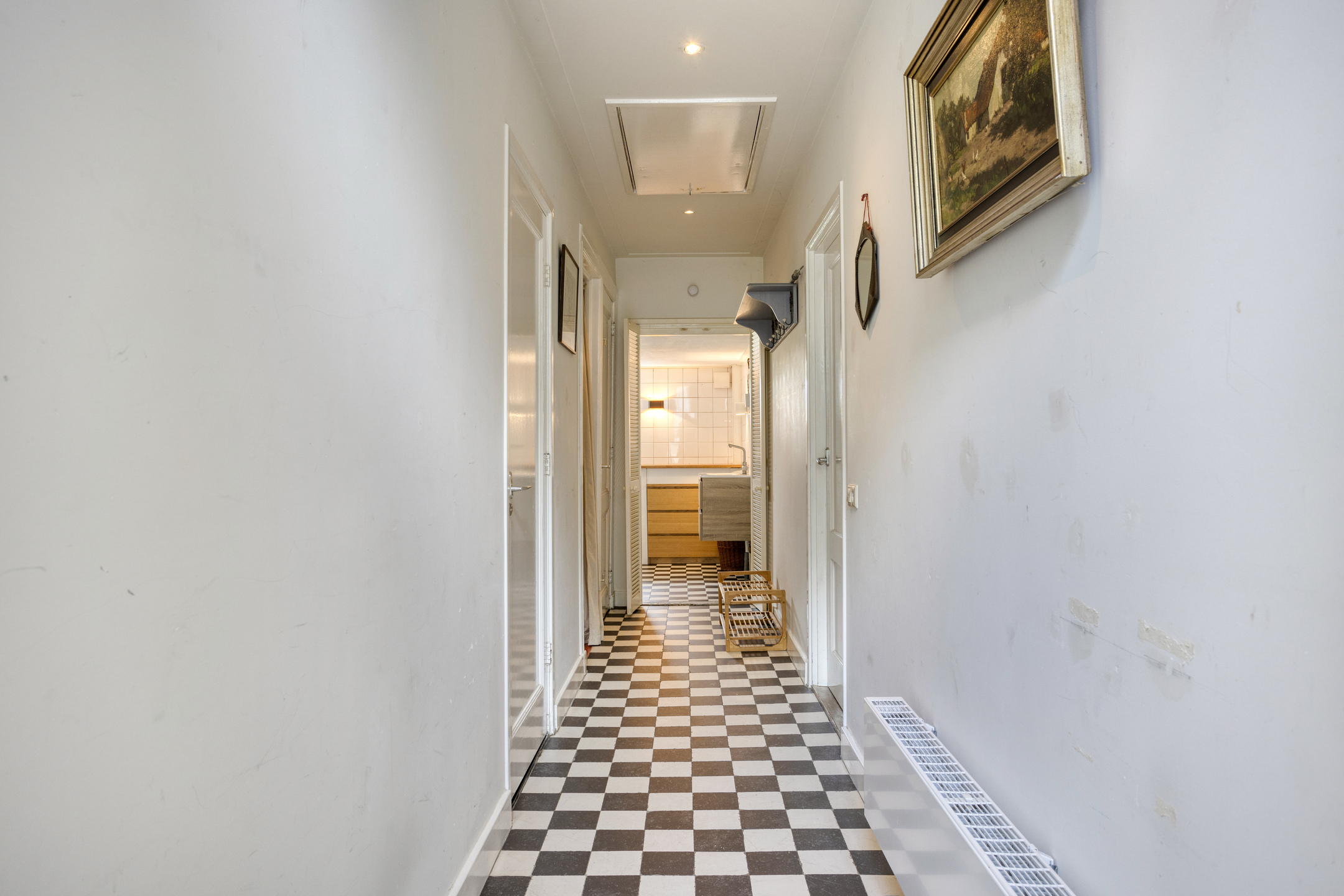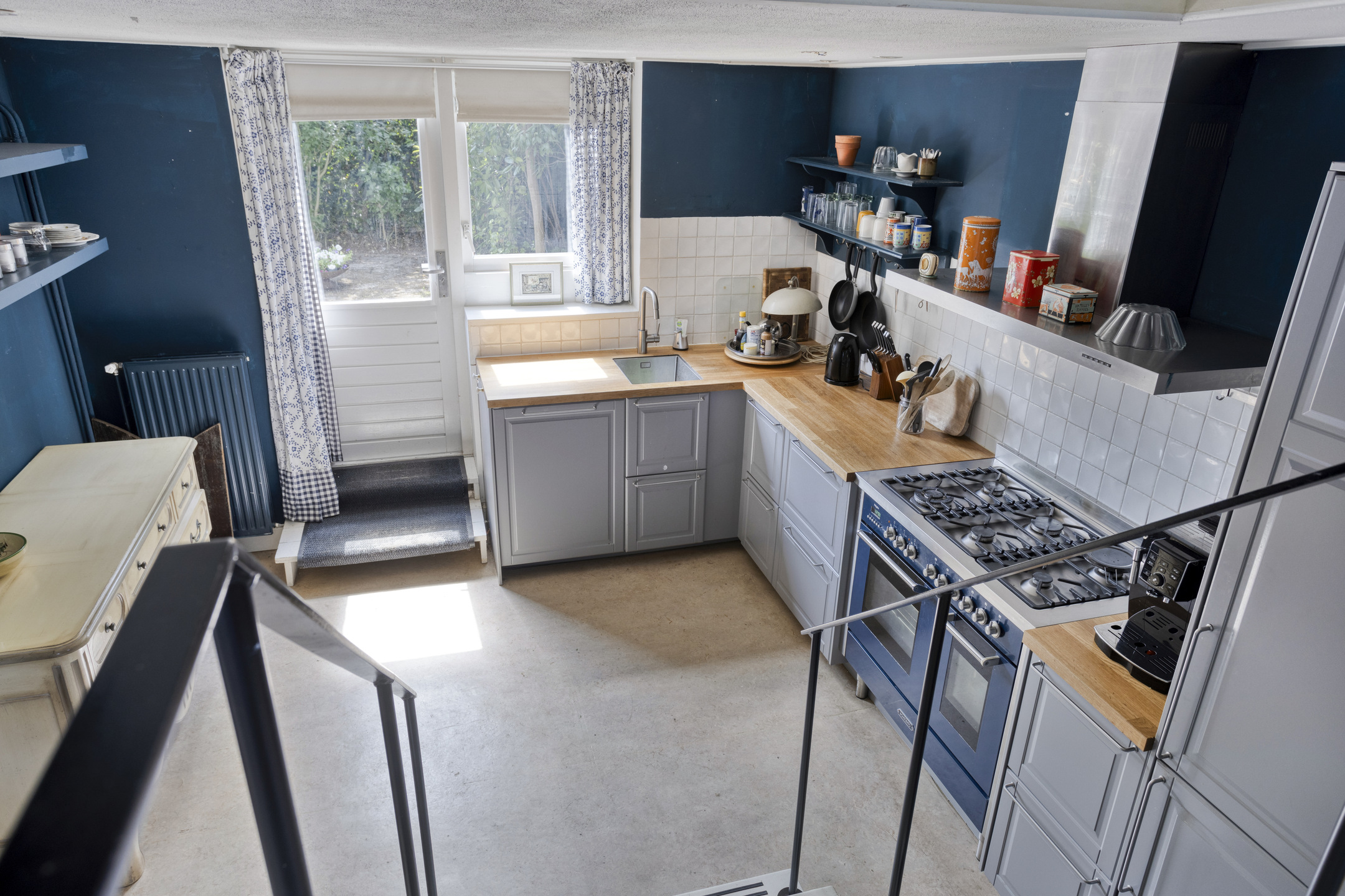 Begane grond: entree, hal voorzien van plavuizenvloer, toilet voorzien van fonteintje. De hal biedt toegang tot de zitkamer, badkamer, kelder en de trap naar de slaapkamer. In de hal bevindt zich tevens de toegang, via een vlizotrap, naar de inpandige bergruimte. De beneden woning heeft een split-level indeling wat het echt bijzonder maakt en is als volgt ingedeeld: vanuit de woonkamer met houtkachel, houten vloeren en hoge plafonds, zijn de twee niveaus te bereiken. Het hoger gelegen gedeelte aan de achterzijde is op dit moment ingericht als zitkamer, maar kan ook dienen als extra slaapruimte. In het lager gelegen gedeelte is de woonkeuken gesitueerd welke beschikt over een 6-pits gasfornuis met (dubbele) oven, afzuigkap, vriezer, koelkast, vaatwasser en tuindeur. Vanuit de hal is een slaapkamer/werkkamer te bereiken ter grootte van circa 7 m². Fraai aangelegde badkamer voorzien van wastafelmeubel, inloopdouche en aansluiting voor de wasapparatuur.