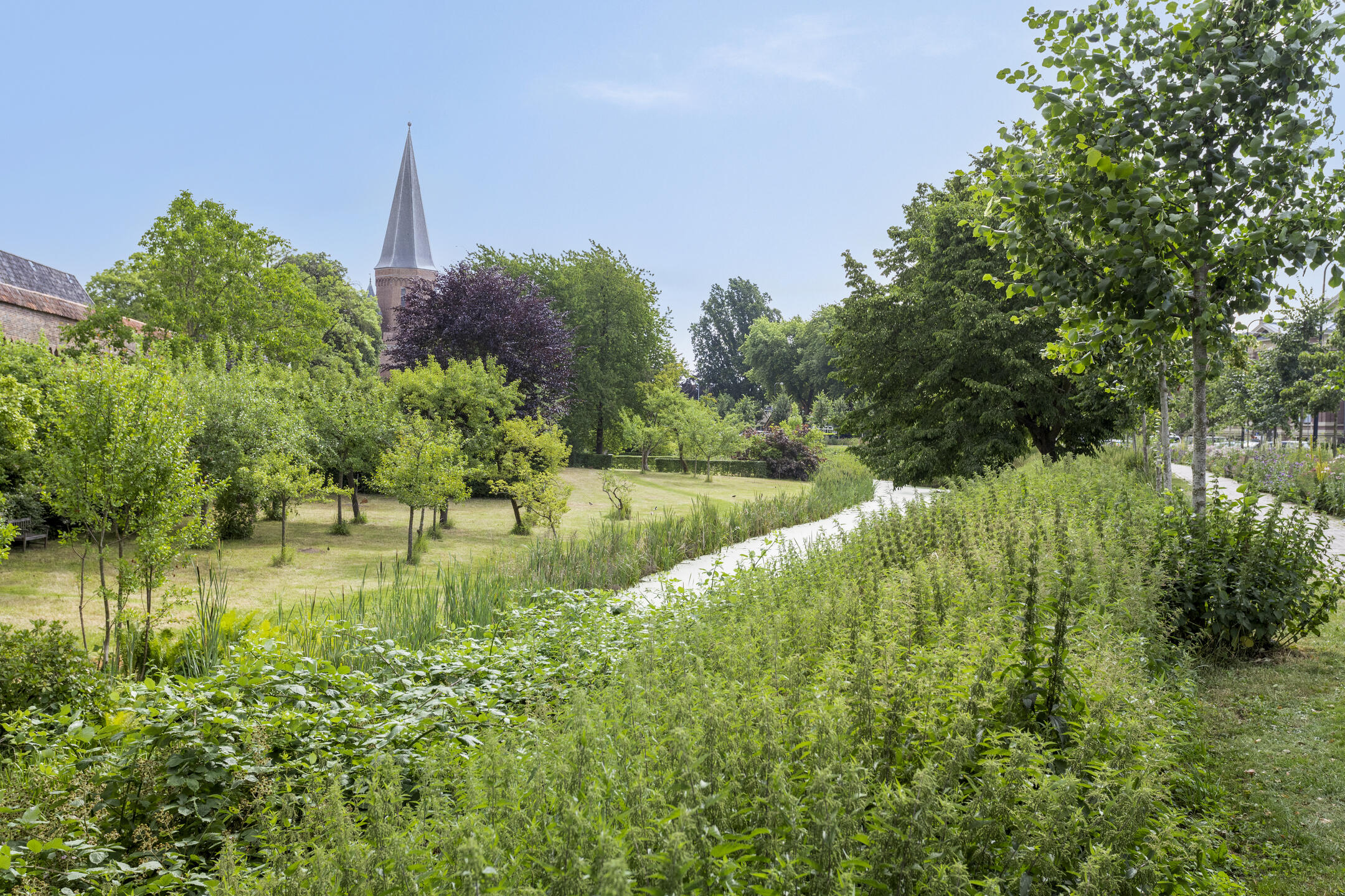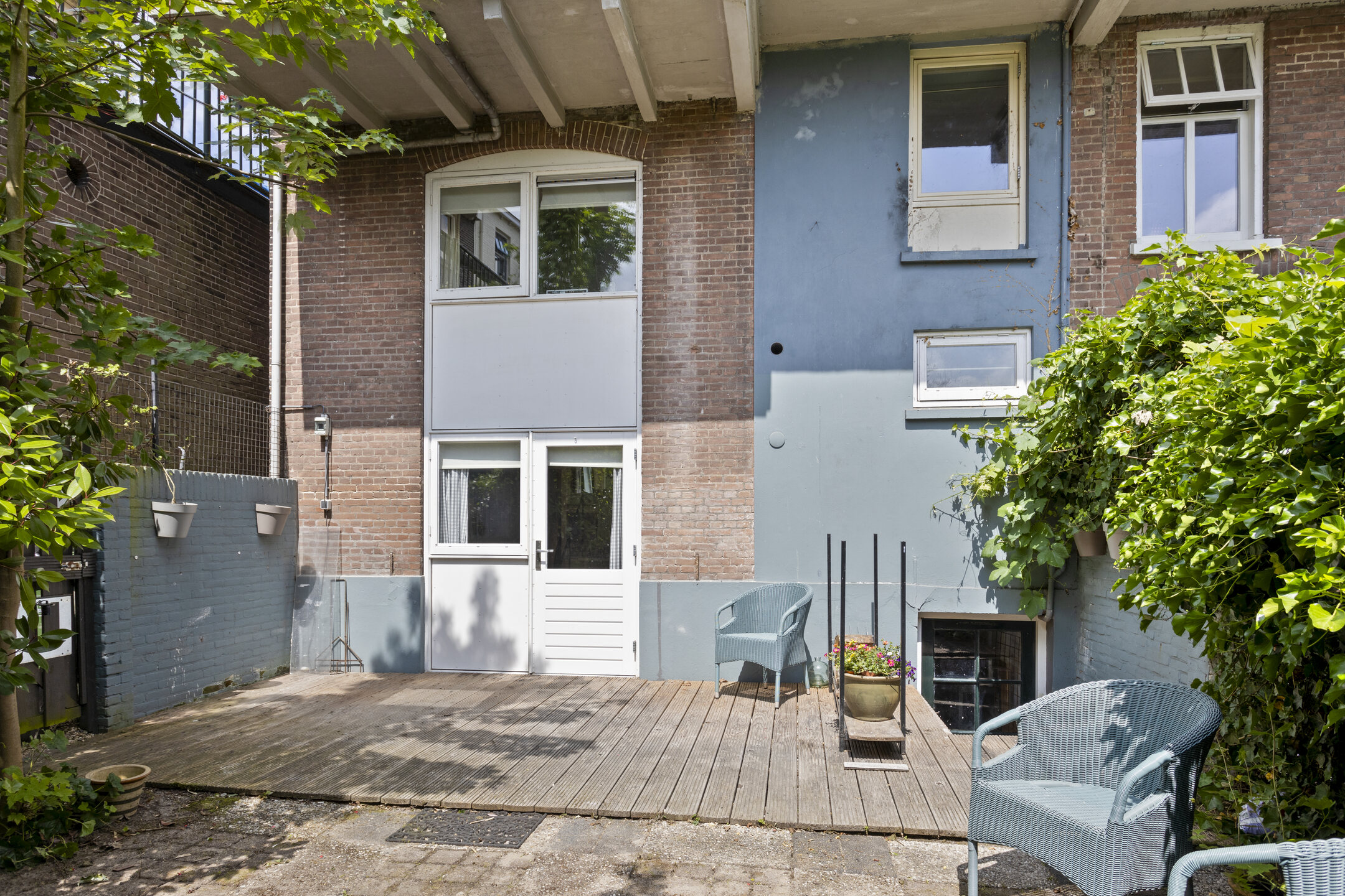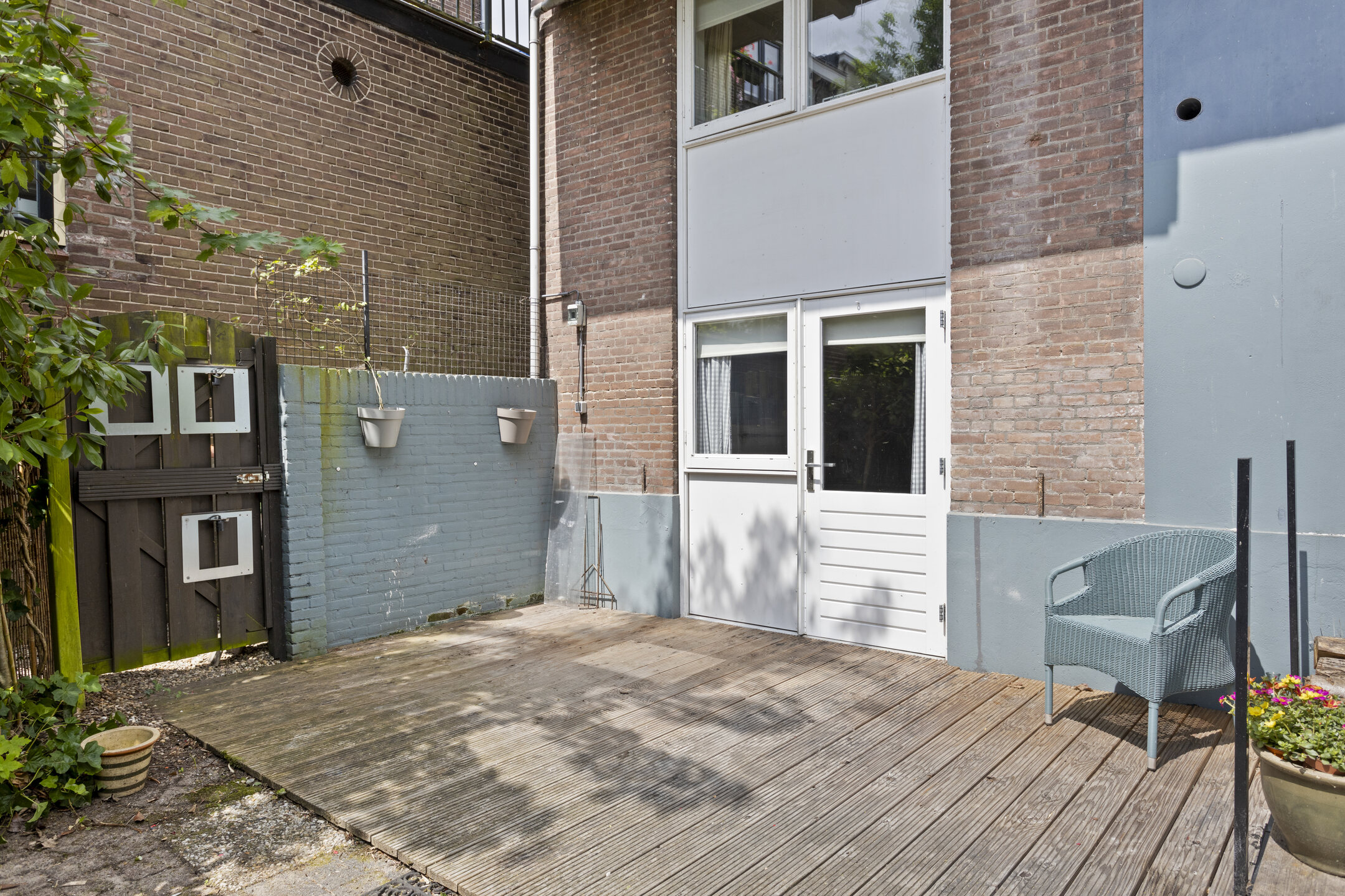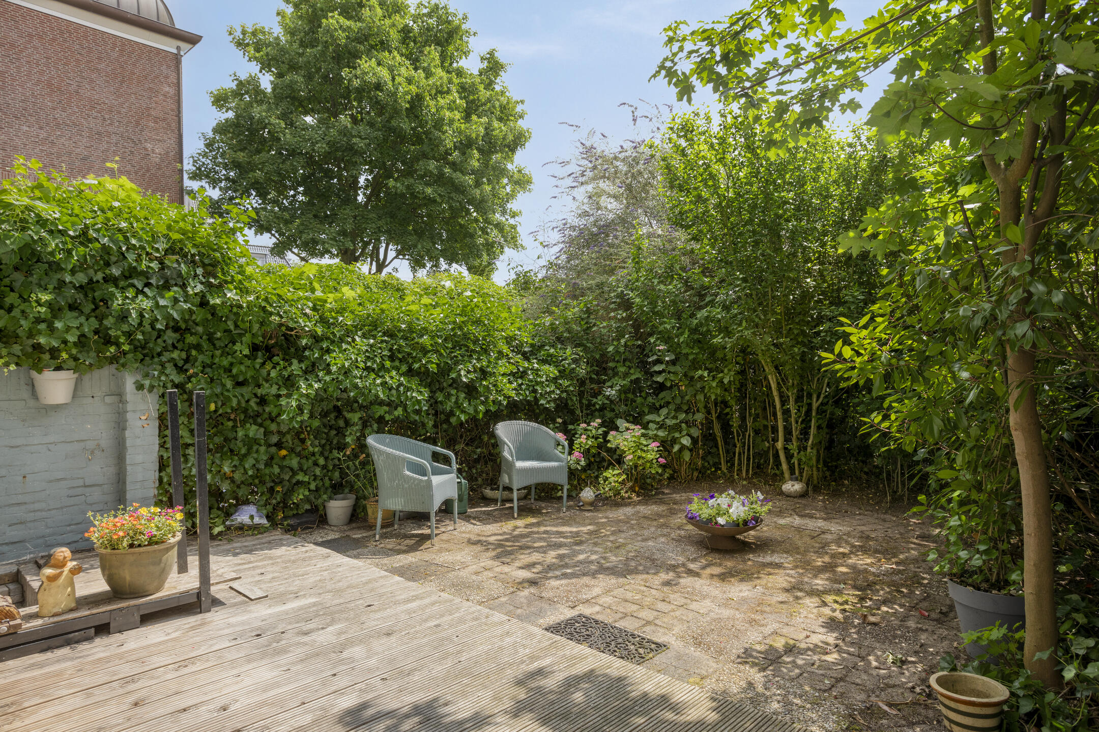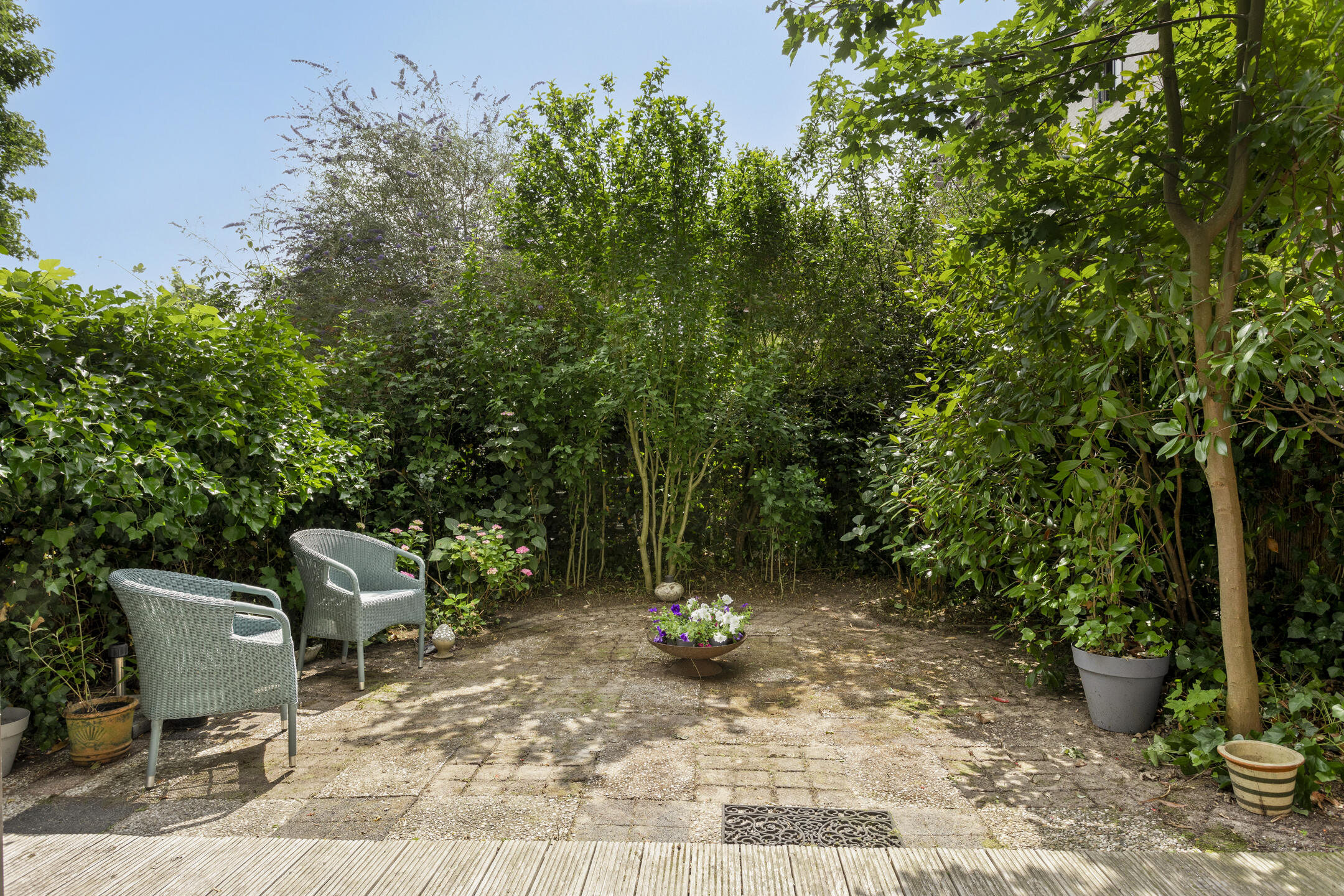 De benedenwoning beschikt over een besloten stadstuin op het zuidoosten, met veranda, groen en bestrating. Deze tuin is achterom te bereiken langs de woning.