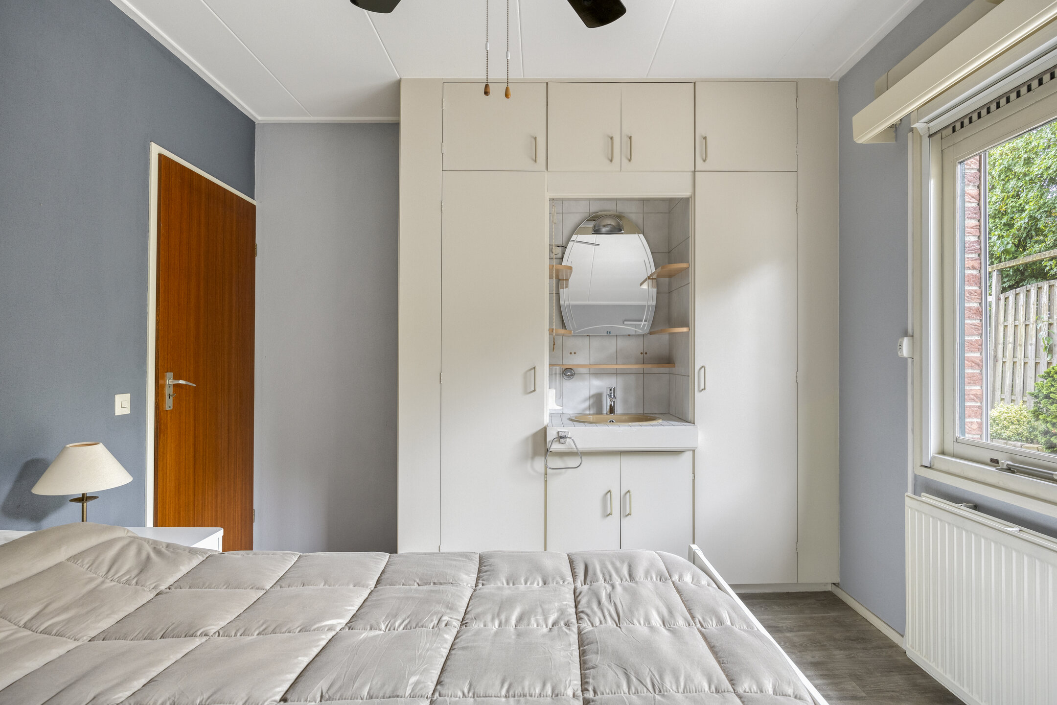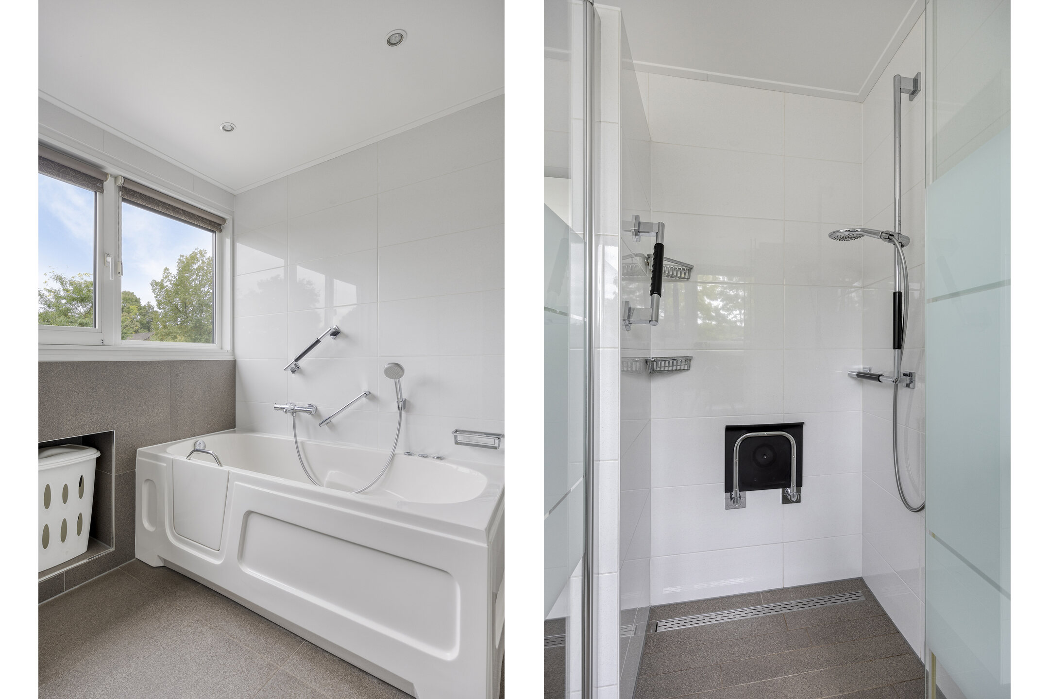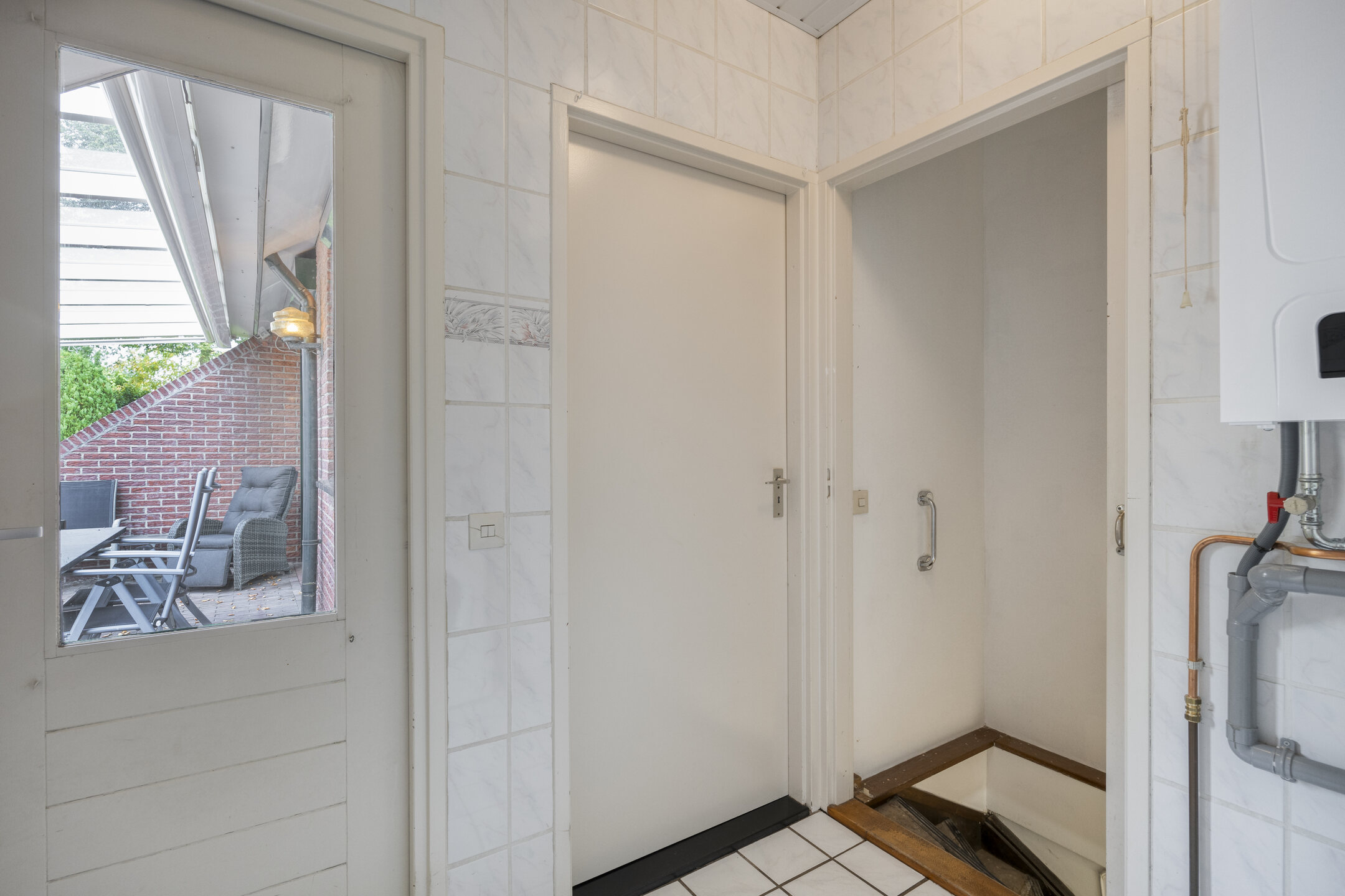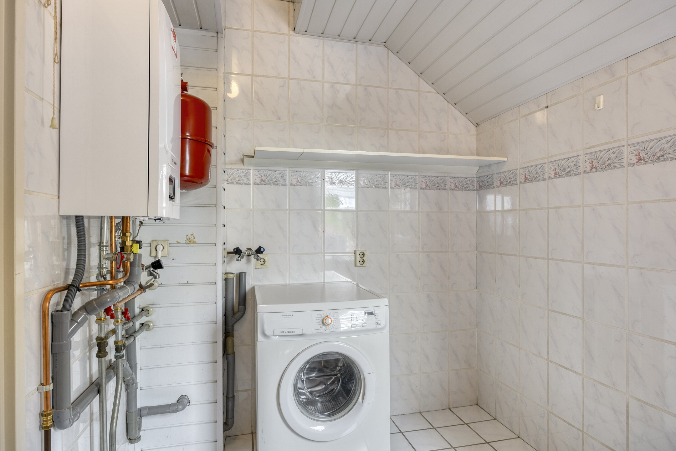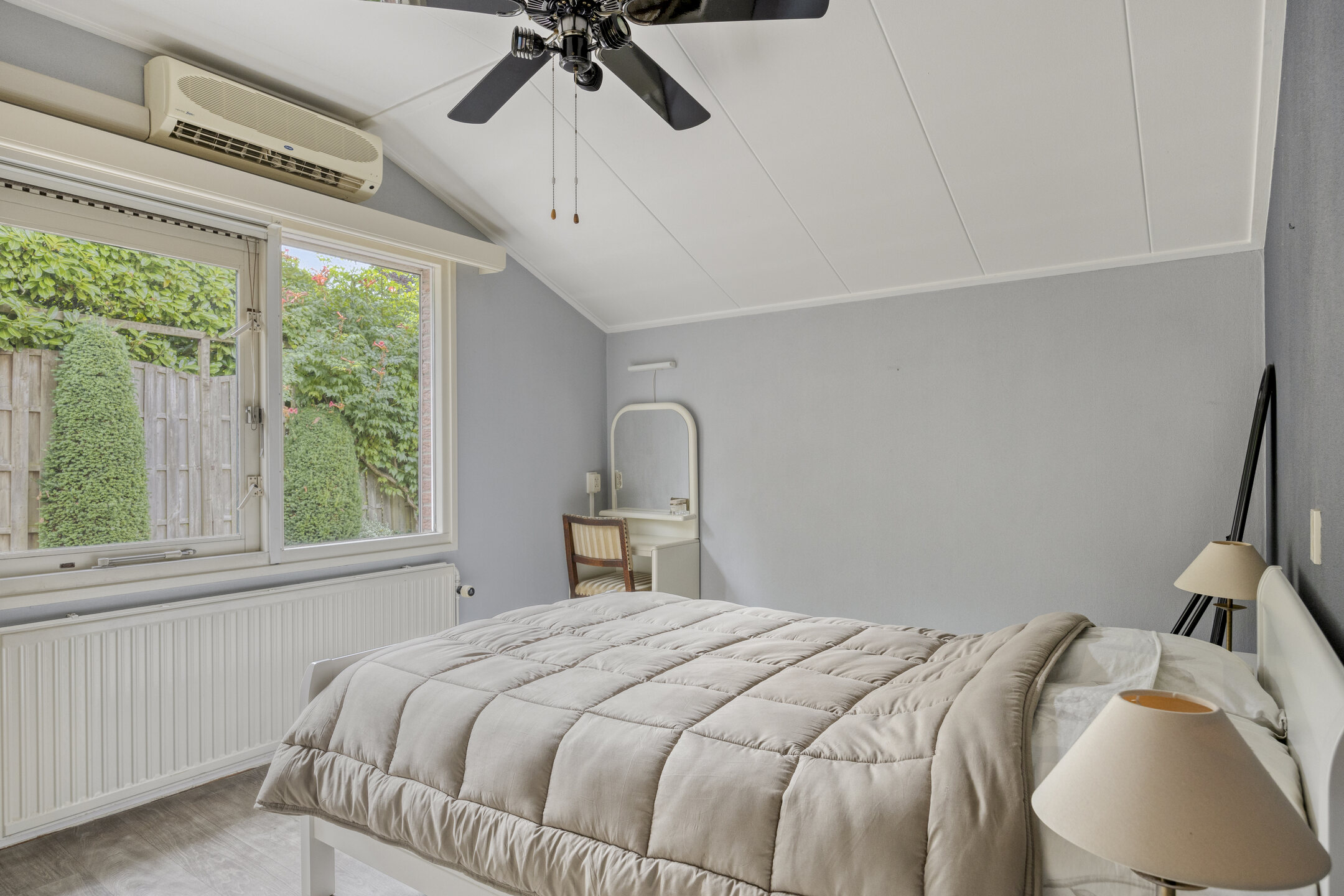 Begane grond: entree, ruime hal met trapopgang naar de 1e verdieping, toegang naar de garage en toilet voorzien van wandcloset en fonteintje. Woonkamer met airconditioning en openhaard. Woonkeuken met schuifpui naar de prachtige tuin. De keuken is voorzien van inductiekookplaat, afzuigkap, combi-oven, vaatwasser en koelkast. Bijkeuken met wasmachine-/wasdrogeraansluiting, opstelling cv-ketel Remeha Tzerra, bouwjaar 2024, tuindeur en toegang tot het souterrain. Slaapkamer van circa 12,5 m² met airconditioning en wastafel.
