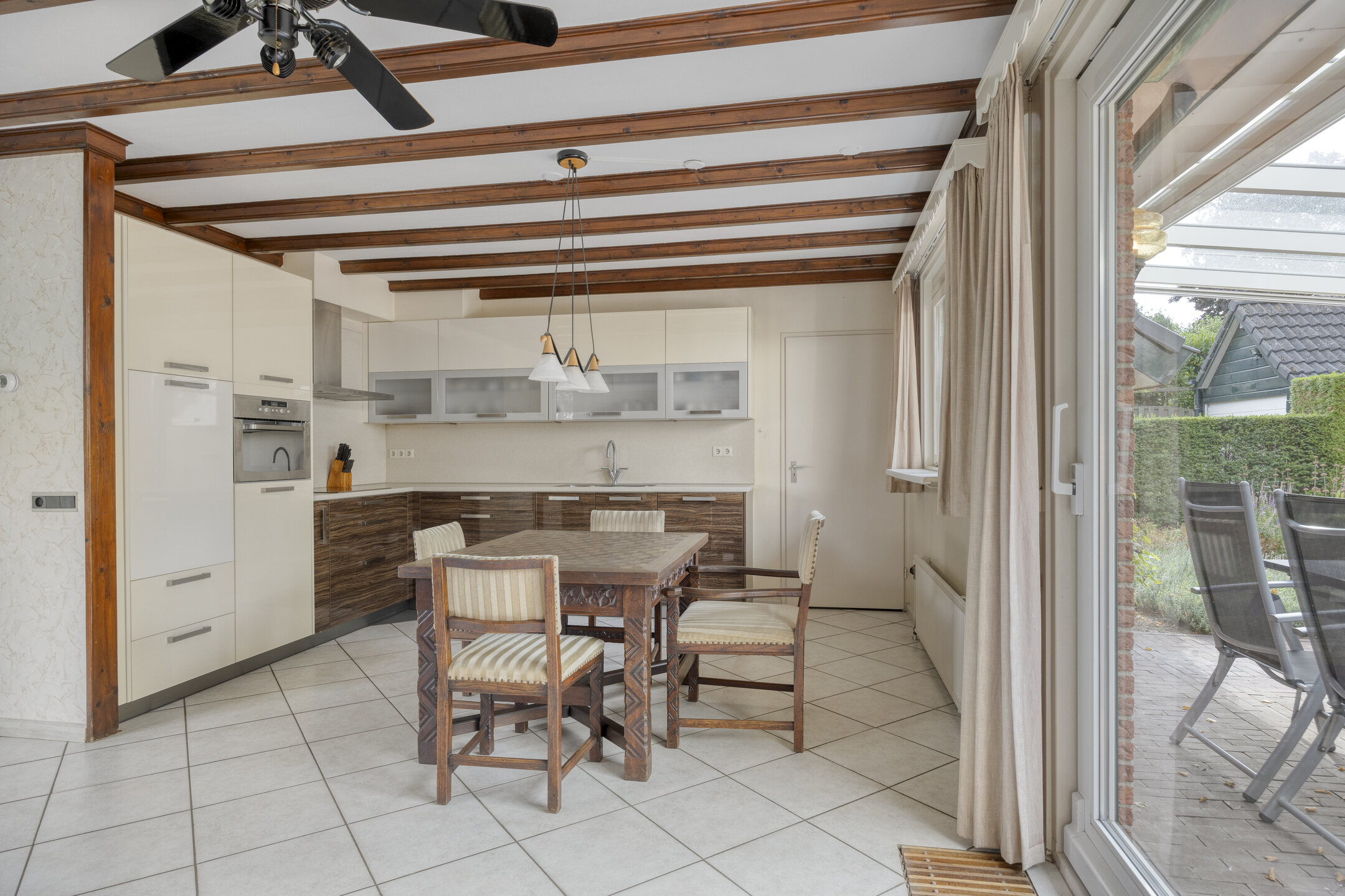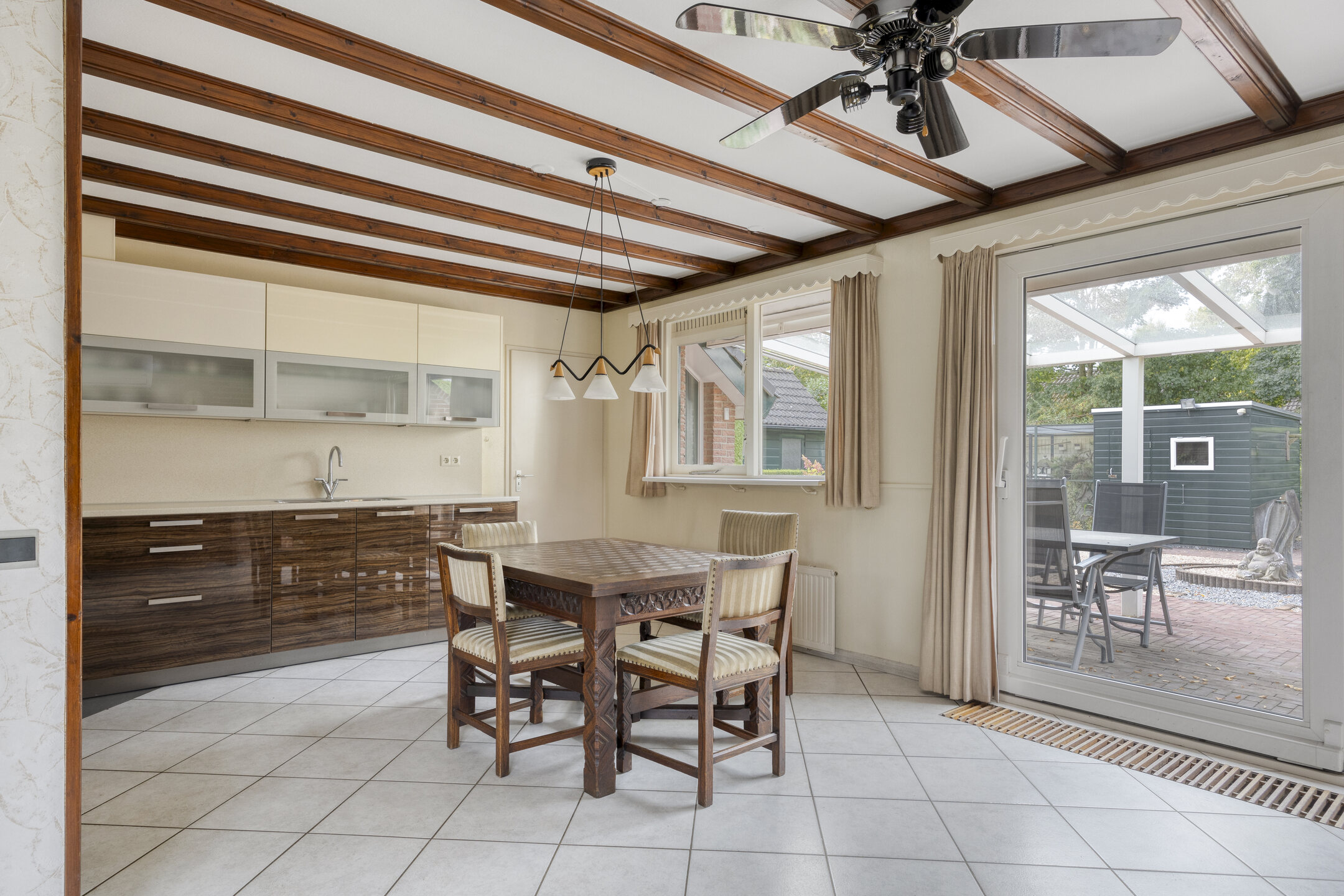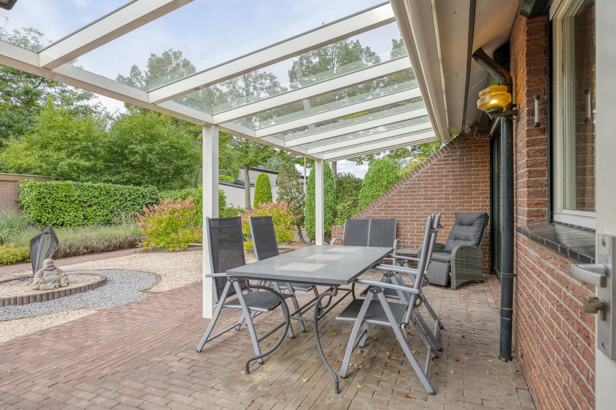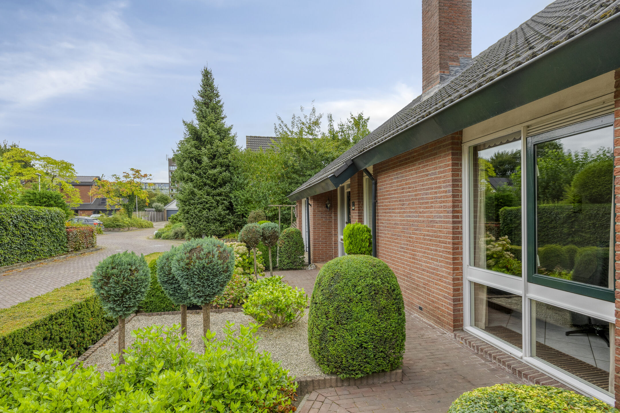 De woning beschikt over een mooie en verzorgde tuin rondom met o.a. een gezellig terras onder de overkapping tegen de achtergevel. Aan de voorzijde van de woning is parkkeerruimte op eigen terrein. Verder zijn er maar liefst 2 garages, 1 inpandig en 1 vrijstaande. Een volière en een houten berging.